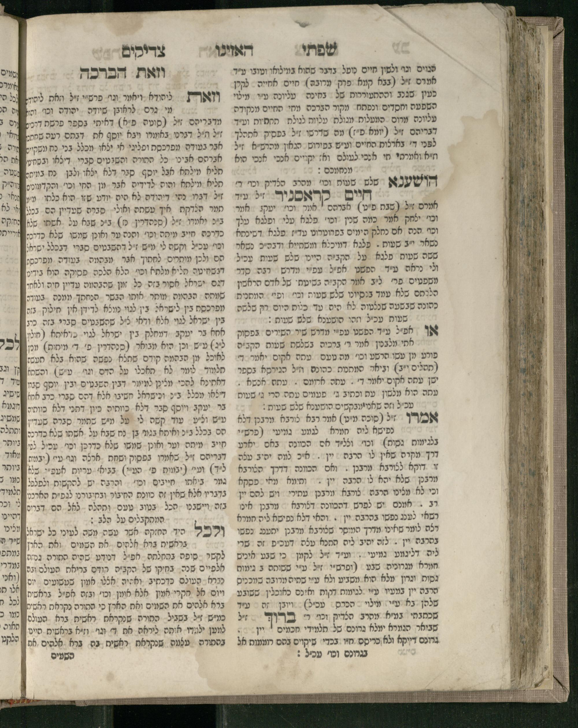 Sefer Śifte tsadiḳim / she-ḥiber ha-rav ... Pinḥas z.l. she-hayah a.b.d. u-mo.ts. be-Dinoṿits ... u-ṿe-ha-sefer ... nimtsa gam ḥidushe oraita mi-kamah tsadiḳim ... u-ṿe-yiḥud nimtsa kama ḥidushe oraita me-ha-Rav ha-tsadiḳ ṿe-khu. me-Apṭa z.l.l. ...ספר שפתי צדיקים / שחיבר הרב ... פנחס ז״ל שהיה אב״ד ומו״צ בדינאוויץ ... ובהספר ... נמצא גם חידושי אורייתא מכמה צדיקים ... וביחיד נמצא כמה חידושי אורייתא מהרב הצדיק וכ״ו מאפטא זל״ל ...