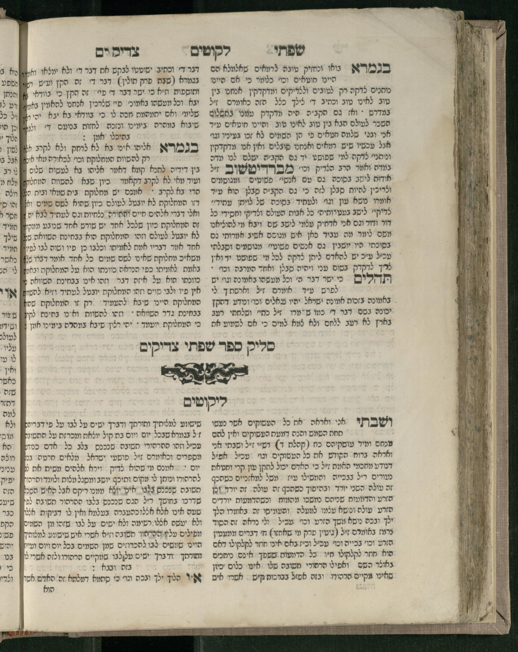 Sefer Śifte tsadiḳim / she-ḥiber ha-rav ... Pinḥas z.l. she-hayah a.b.d. u-mo.ts. be-Dinoṿits ... u-ṿe-ha-sefer ... nimtsa gam ḥidushe oraita mi-kamah tsadiḳim ... u-ṿe-yiḥud nimtsa kama ḥidushe oraita me-ha-Rav ha-tsadiḳ ṿe-khu. me-Apṭa z.l.l. ...ספר שפתי צדיקים / שחיבר הרב ... פנחס ז״ל שהיה אב״ד ומו״צ בדינאוויץ ... ובהספר ... נמצא גם חידושי אורייתא מכמה צדיקים ... וביחיד נמצא כמה חידושי אורייתא מהרב הצדיק וכ״ו מאפטא זל״ל ...