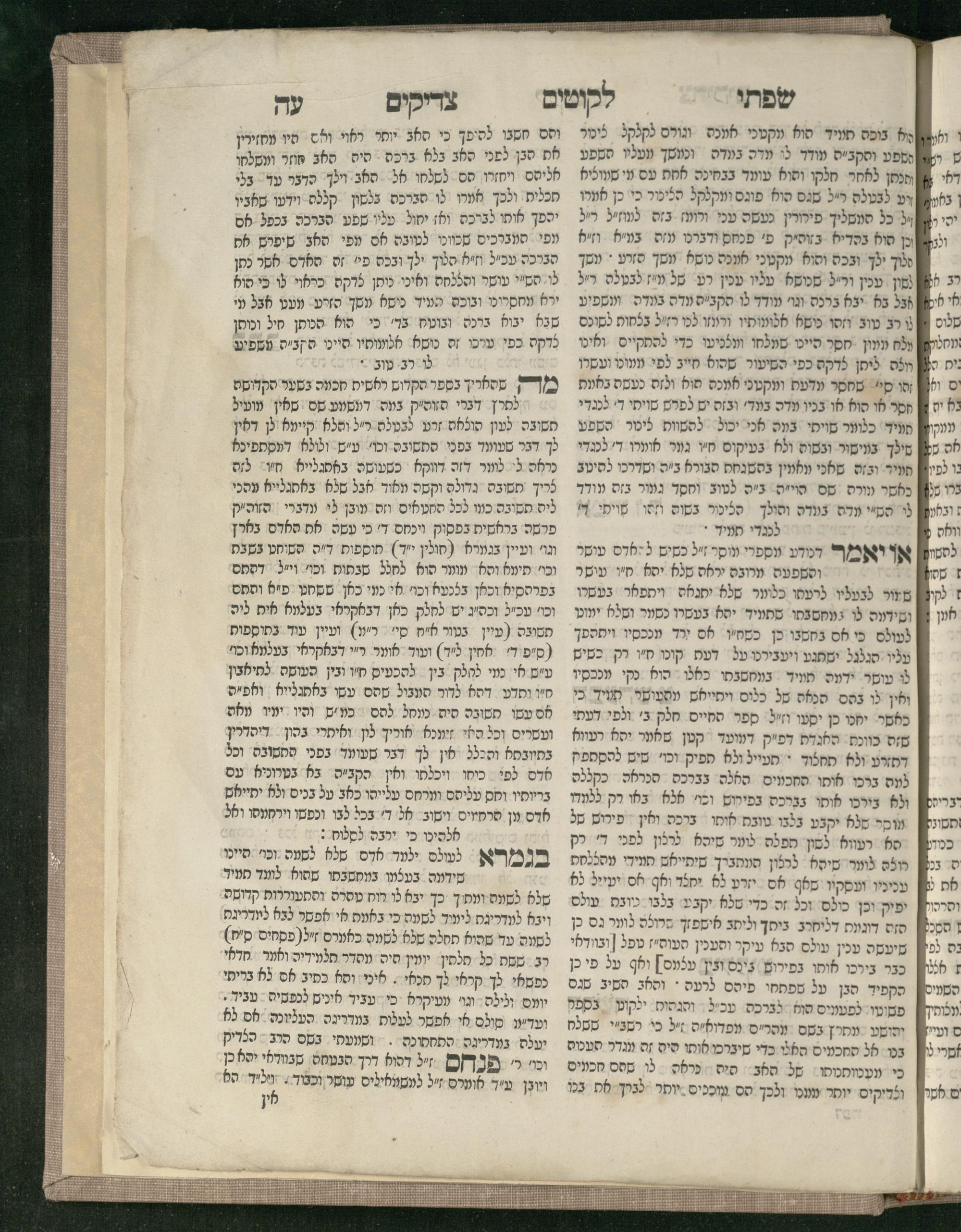 Sefer Śifte tsadiḳim / she-ḥiber ha-rav ... Pinḥas z.l. she-hayah a.b.d. u-mo.ts. be-Dinoṿits ... u-ṿe-ha-sefer ... nimtsa gam ḥidushe oraita mi-kamah tsadiḳim ... u-ṿe-yiḥud nimtsa kama ḥidushe oraita me-ha-Rav ha-tsadiḳ ṿe-khu. me-Apṭa z.l.l. ...ספר שפתי צדיקים / שחיבר הרב ... פנחס ז״ל שהיה אב״ד ומו״צ בדינאוויץ ... ובהספר ... נמצא גם חידושי אורייתא מכמה צדיקים ... וביחיד נמצא כמה חידושי אורייתא מהרב הצדיק וכ״ו מאפטא זל״ל ...
