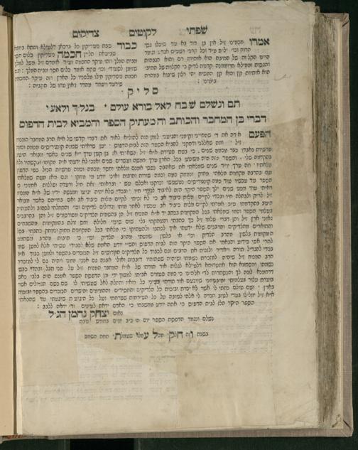 Sefer Śifte tsadiḳim / she-ḥiber ha-rav ... Pinḥas z.l. she-hayah a.b.d. u-mo.ts. be-Dinoṿits ... u-ṿe-ha-sefer ... nimtsa gam ḥidushe oraita mi-kamah tsadiḳim ... u-ṿe-yiḥud nimtsa kama ḥidushe oraita me-ha-Rav ha-tsadiḳ ṿe-khu. me-Apṭa z.l.l. ...ספר שפתי צדיקים / שחיבר הרב ... פנחס ז״ל שהיה אב״ד ומו״צ בדינאוויץ ... ובהספר ... נמצא גם חידושי אורייתא מכמה צדיקים ... וביחיד נמצא כמה חידושי אורייתא מהרב הצדיק וכ״ו מאפטא זל״ל ...