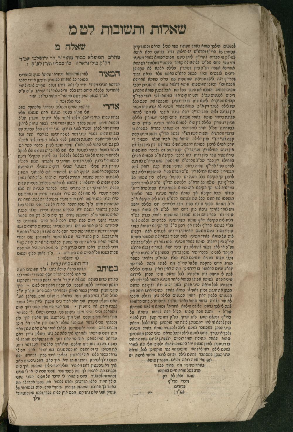 ḥeleḳ shelishi (1738) Sefer Sheʾelot u-teshuvot : ṿe-ḥidushim u-veʾurim mi-Masekhet Ḳidushin u-Vetsahḥeleḳ shelishi (1738) ספר שאלות ותשובות : וחדיושים וביאורים ממסכת קידושין וביצה