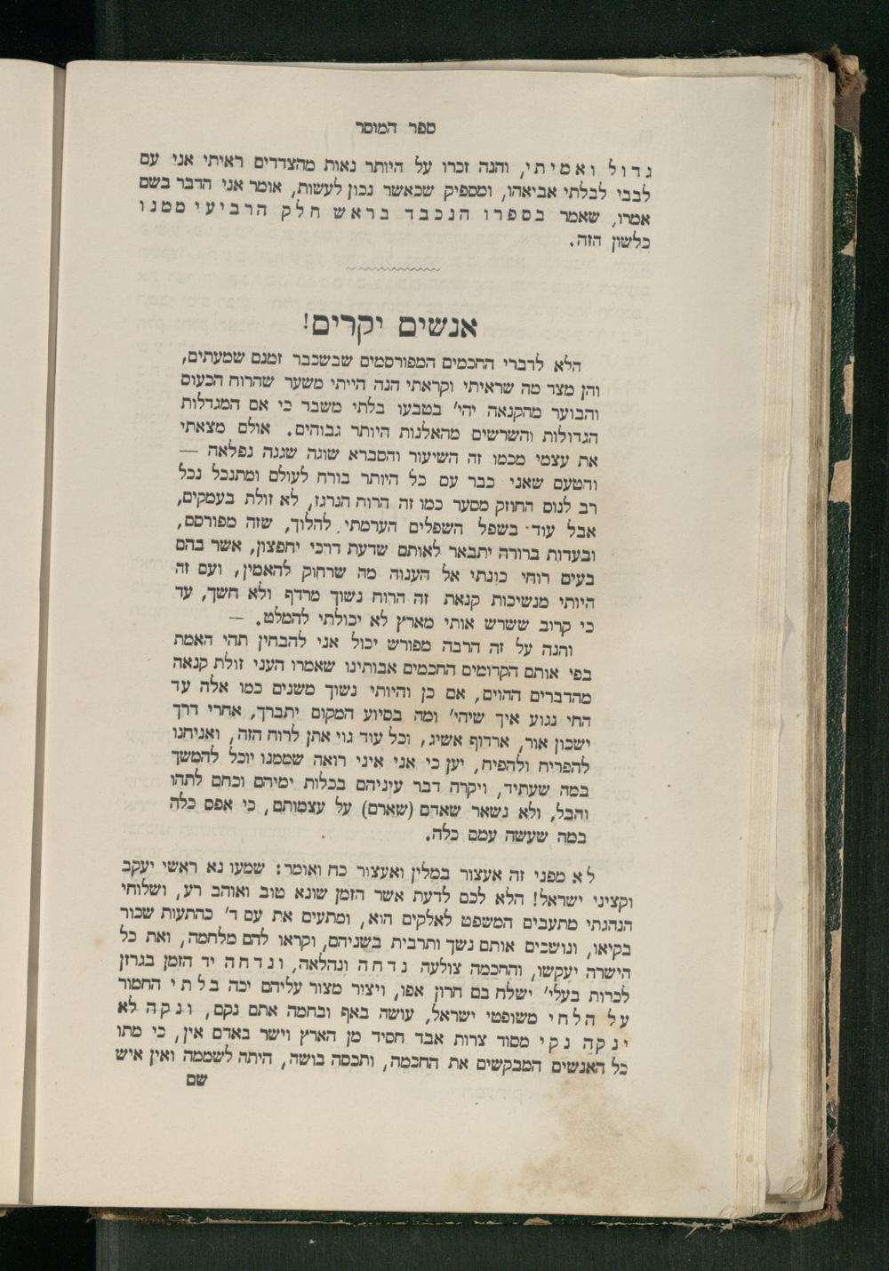 Sefer ha-Musar / le-n. [ibn] Efrayim me-Erets Modena ; neʿetaḳ me-et Yoḥanan b.m.sh.z. Ṿiṭṭḳoṿer me-Alṭona ; yotse le-or be-paʿam rishonah mi-ket.y. ha-nimtsa ba-bibliyoṭheḳa ha-gedolah ba-ʿir Hamburg y.ʿa.ʿe. Cod. heb. CCLV. 4 to ʿal yede ḥevrat Meḳitse Nirdamimספר המוסר / לן׳ אפרים מארץ מודינ״א ; נעתק מאת יוחנן במש״ז וויטטקאווער מאלטונא, על ידי חברת מקיצי נרדמים ; יוצא לאור בפעם ראשונה מכת״י הנמצא בביבליאוטהיקא הגדולה בעיר האמבורג יע״ע Cod. hebr. CCLV. 4to על ידי חברת מקיצי נרדמים