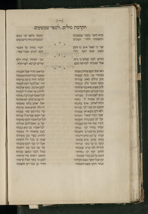 Ḥoveret Yen Levanon : sheloshah sefarim niftaḥim : perush ʿal masekhet Rosh ha-shanah le-ha-Rambam, S. Zekhut adam le-R. Daṿid mi-Roḳa Marṭika, S. Saʿashuʿim le-R. Yosef Zabara / ... yatsʾu rishonah la-or bi-defus ʿal yede ṿe-ʿal hotsaʾot Yeḥiʾel Brilחוברת יין לבנון : שלשה ספרים נפתחים : פירוש על מסכת ראש השנה להרמב״ם, ס׳ זכות אדם לר׳ דוד מרוקא מרטיקא, ס׳ סעשועים לר׳ יוסף זברא / ... יצאו ראשונה לאור בדפוס על ידי ועל הוצאות יחיאל בריל