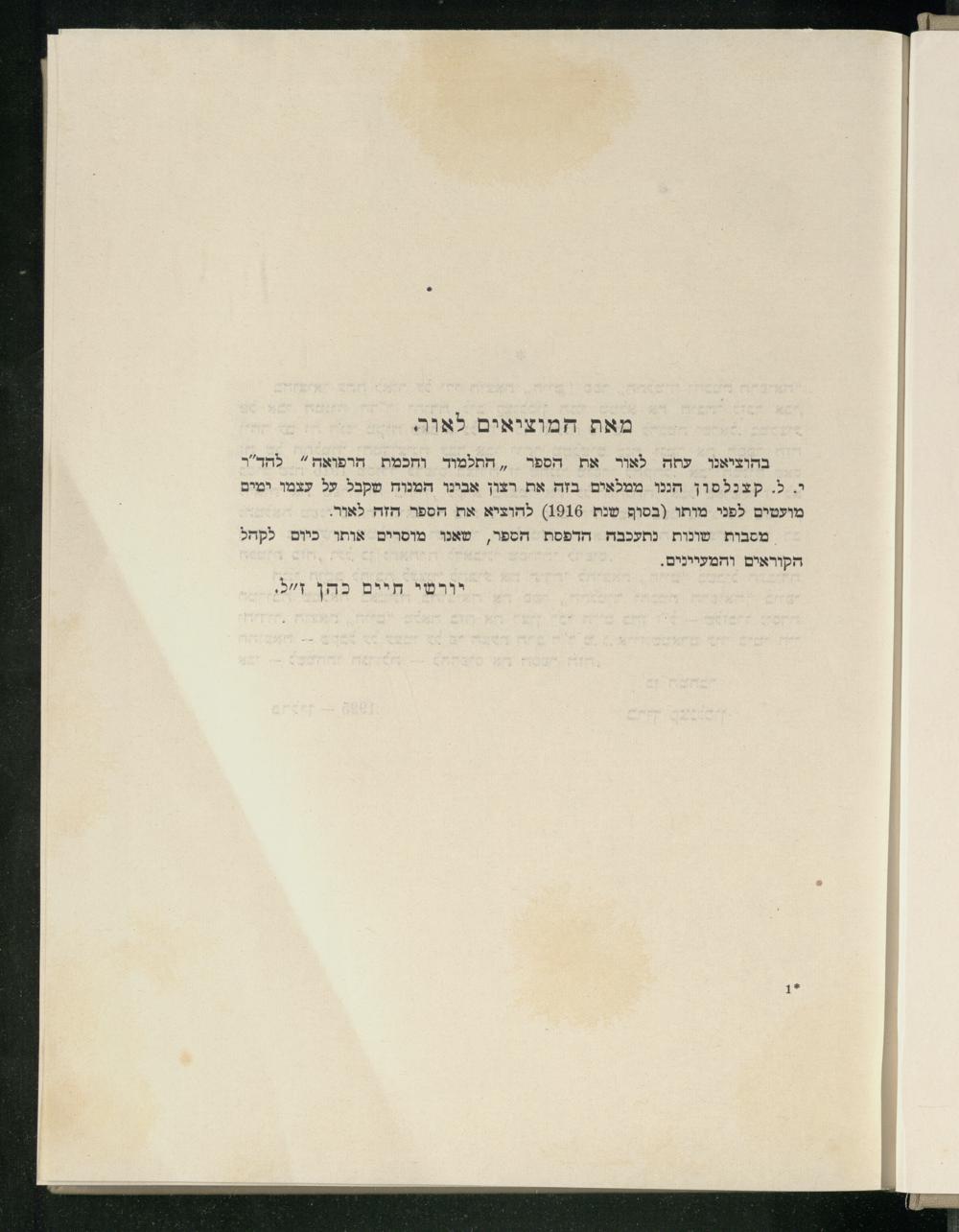 ha- Talmud ṿe-ḥokhmat ha-refuʾah / me-et D.r. Y.L. Ḳatsenelson (Buḳi Ben Yogli)ה תלמוד וחכמת הרפואה / מאת ד״ר י.ל. קצנלסון (בוקי בן יגלי)