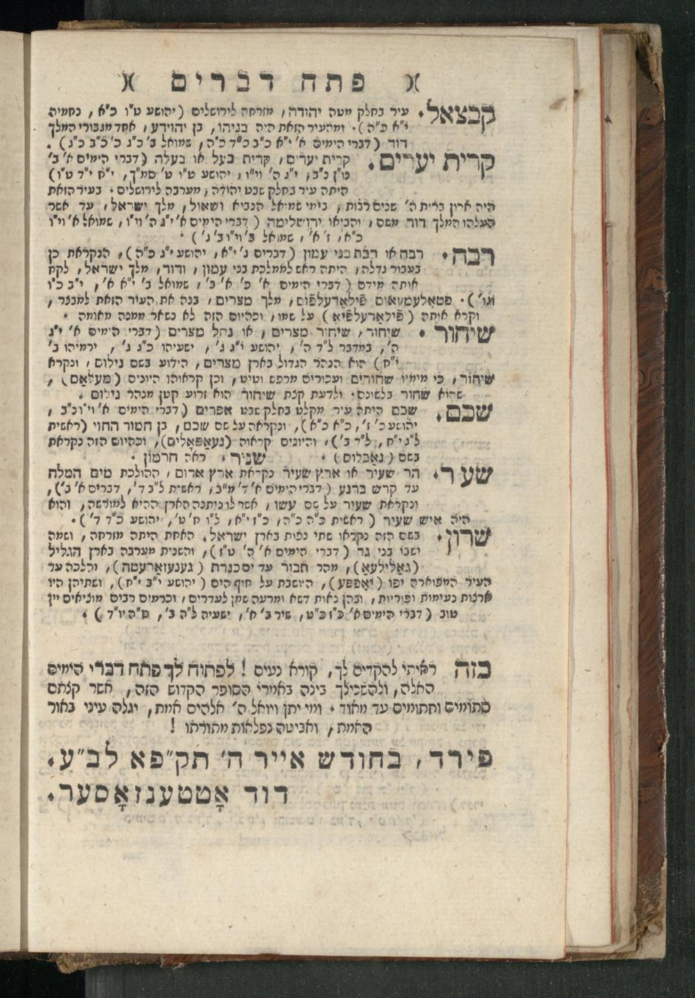Sefer Divre ha-yamim 1 / meturgam Ashkenazit u-mevoʾar me-et Daṿid Oṭṭenzoser, gam hitsagnu bo perush ... Rashi z.ts.l., ṿe-nilṿeh elaṿ perush Mikhlal yofi ...ספר דברי הימים א / מתורגם אשכנזית ומבואר מאת דוד אטטענזאסער, גם הצגתנו בו פירוש ... רש״י זצ״ל, ונלוה אליו פירוש מכלל יופי ...