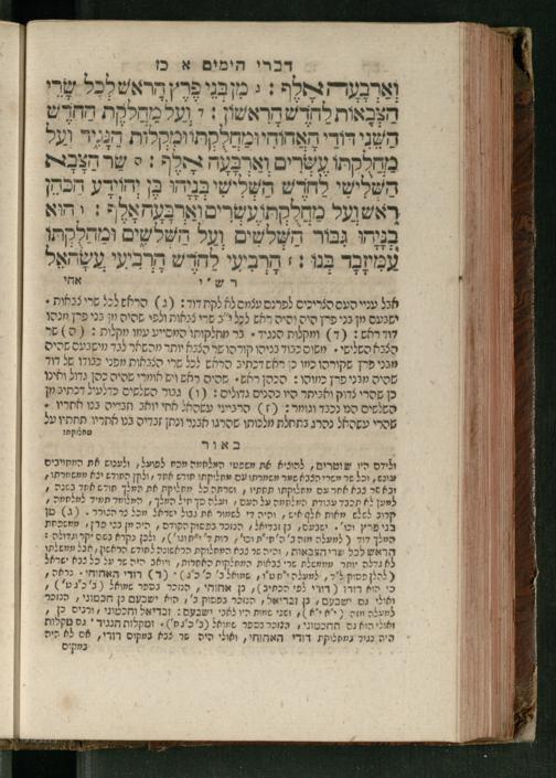 Sefer Divre ha-yamim 1 / meturgam Ashkenazit u-mevoʾar me-et Daṿid Oṭṭenzoser, gam hitsagnu bo perush ... Rashi z.ts.l., ṿe-nilṿeh elaṿ perush Mikhlal yofi ...ספר דברי הימים א / מתורגם אשכנזית ומבואר מאת דוד אטטענזאסער, גם הצגתנו בו פירוש ... רש״י זצ״ל, ונלוה אליו פירוש מכלל יופי ...
