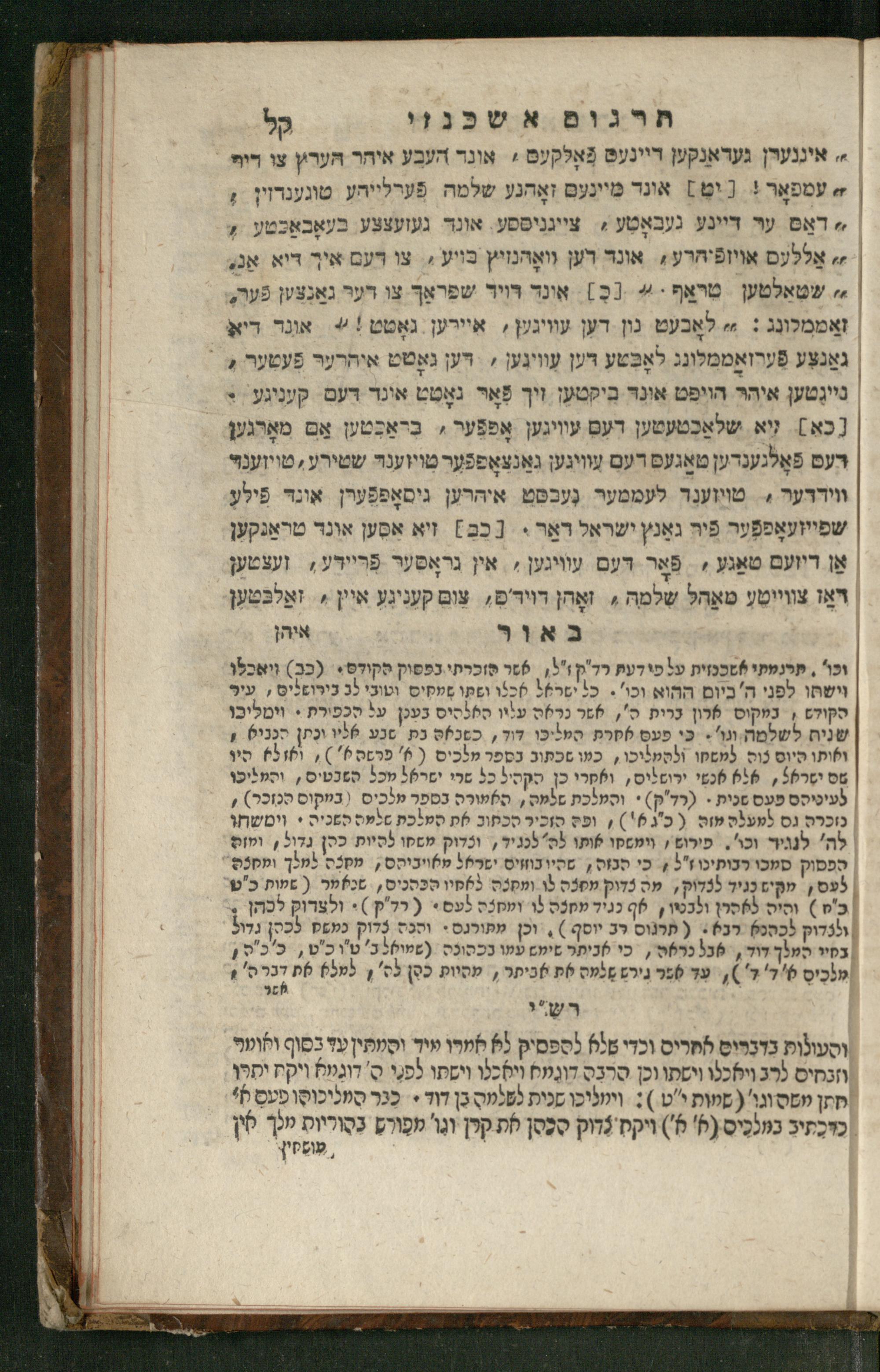 Sefer Divre ha-yamim 1 / meturgam Ashkenazit u-mevoʾar me-et Daṿid Oṭṭenzoser, gam hitsagnu bo perush ... Rashi z.ts.l., ṿe-nilṿeh elaṿ perush Mikhlal yofi ...ספר דברי הימים א / מתורגם אשכנזית ומבואר מאת דוד אטטענזאסער, גם הצגתנו בו פירוש ... רש״י זצ״ל, ונלוה אליו פירוש מכלל יופי ...