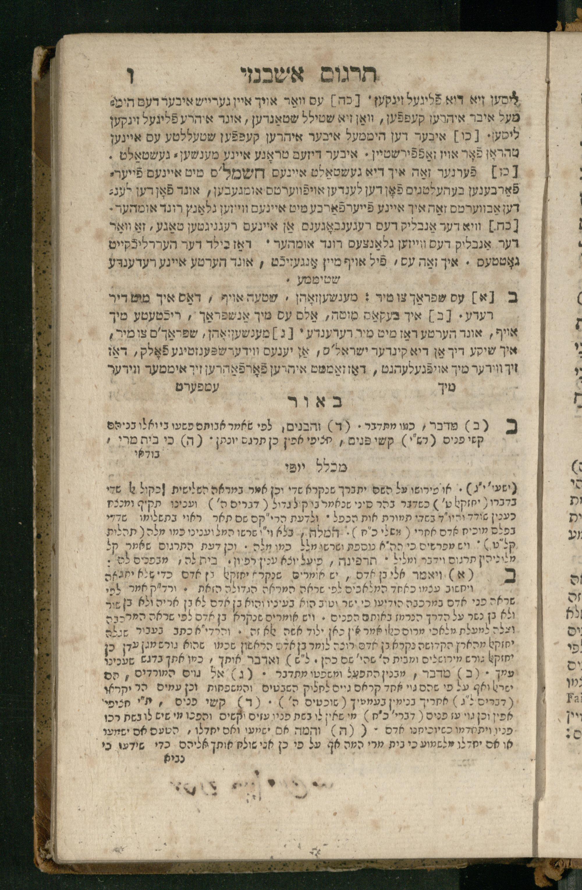 Ṿe-hu Sefer Yeḥezḳel / meturgam Ashkenazit u-mevoʾar, gam hitsagti bo perush ... Rashi z.ts.l. ... Ṿe-nilṿeh elaṿ perush Mikhlal yofi ...והוא ספר יחזקאל / מתורגם אשכנזית ומבואר, גם הצגתי בו פירוש ... רש״י זצ״ל ... ונלוה אליו פירוש מכלל יופי ...