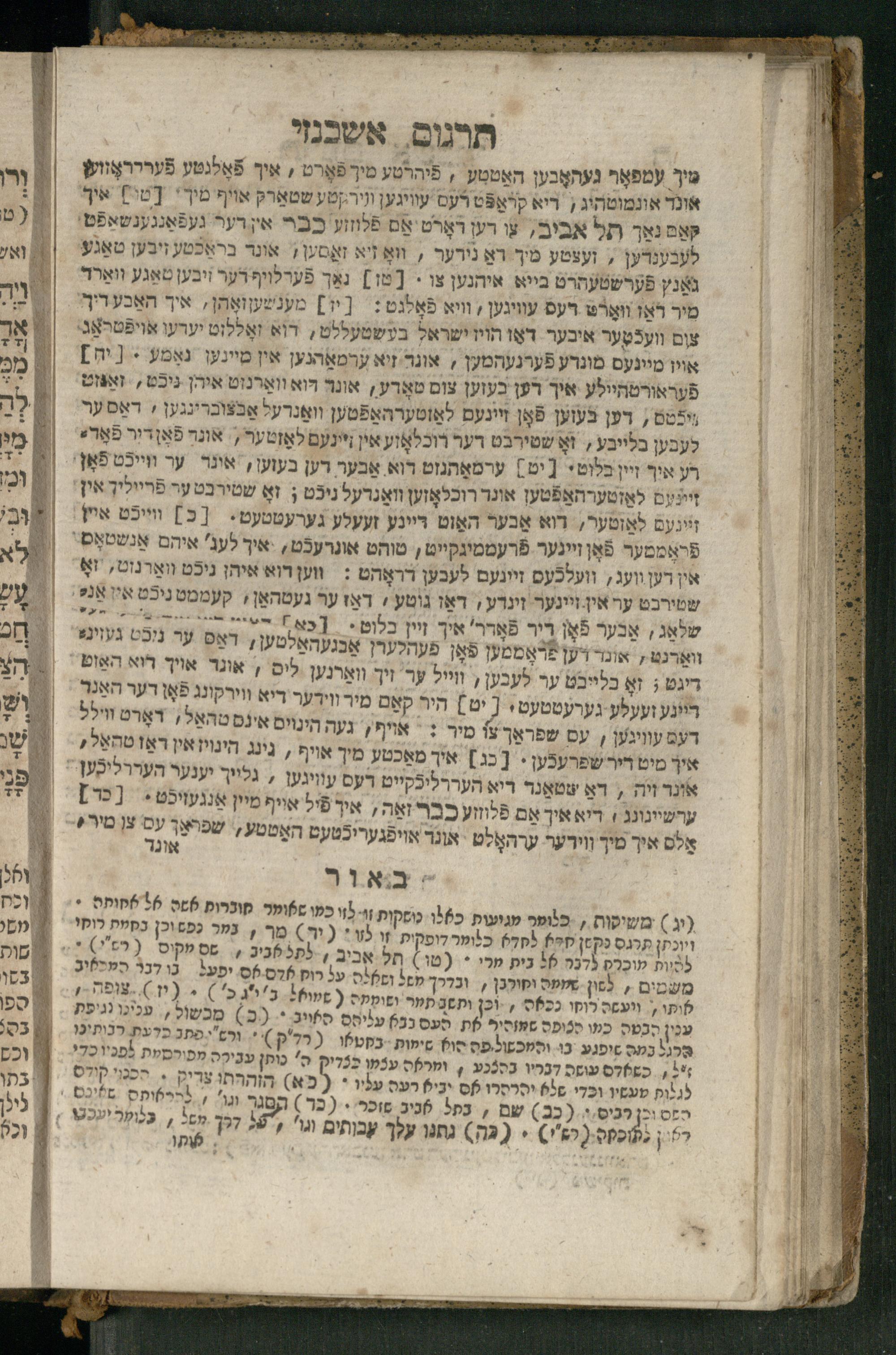 Ṿe-hu Sefer Yeḥezḳel / meturgam Ashkenazit u-mevoʾar, gam hitsagti bo perush ... Rashi z.ts.l. ... Ṿe-nilṿeh elaṿ perush Mikhlal yofi ...והוא ספר יחזקאל / מתורגם אשכנזית ומבואר, גם הצגתי בו פירוש ... רש״י זצ״ל ... ונלוה אליו פירוש מכלל יופי ...