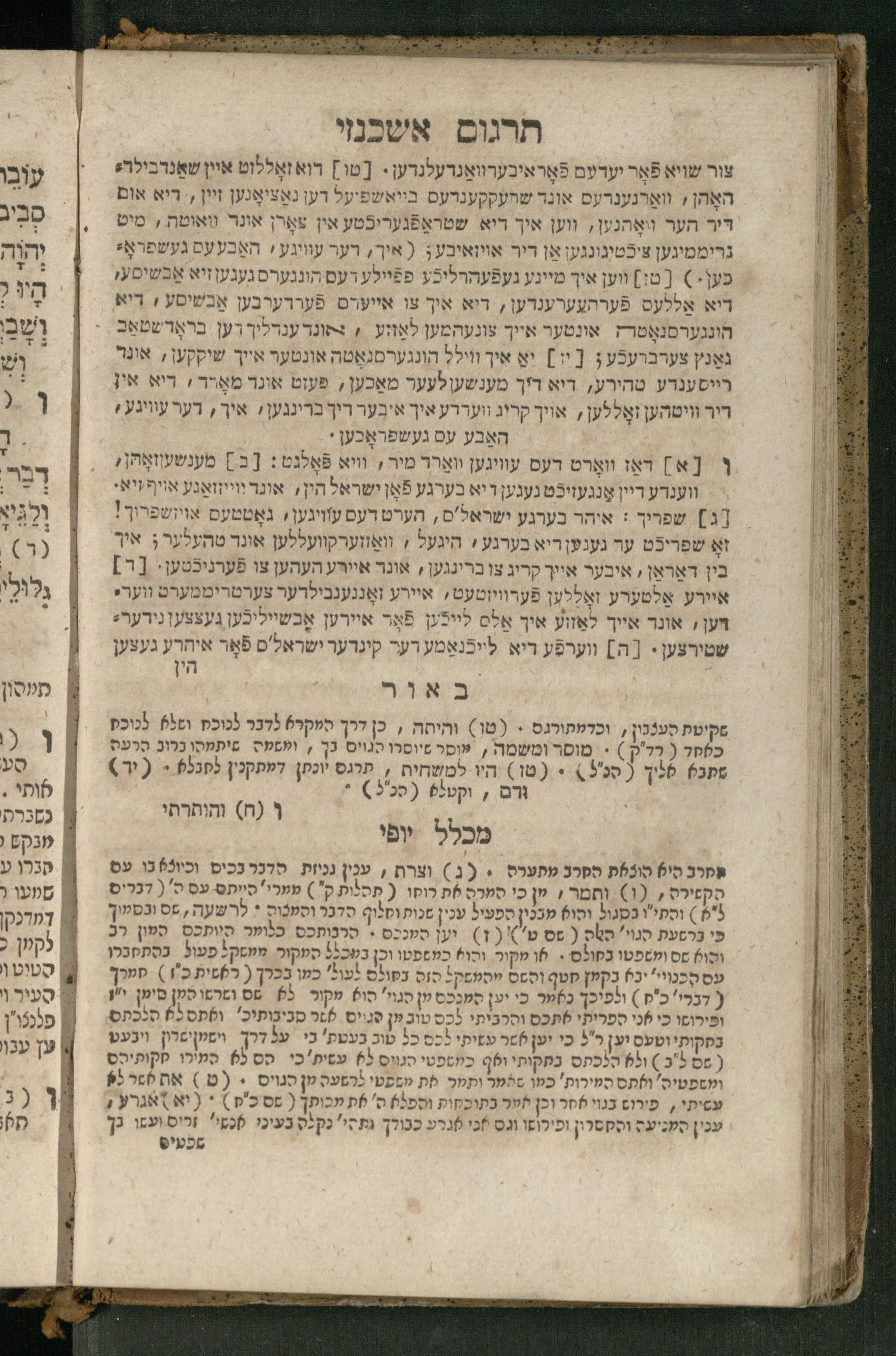 Ṿe-hu Sefer Yeḥezḳel / meturgam Ashkenazit u-mevoʾar, gam hitsagti bo perush ... Rashi z.ts.l. ... Ṿe-nilṿeh elaṿ perush Mikhlal yofi ...והוא ספר יחזקאל / מתורגם אשכנזית ומבואר, גם הצגתי בו פירוש ... רש״י זצ״ל ... ונלוה אליו פירוש מכלל יופי ...