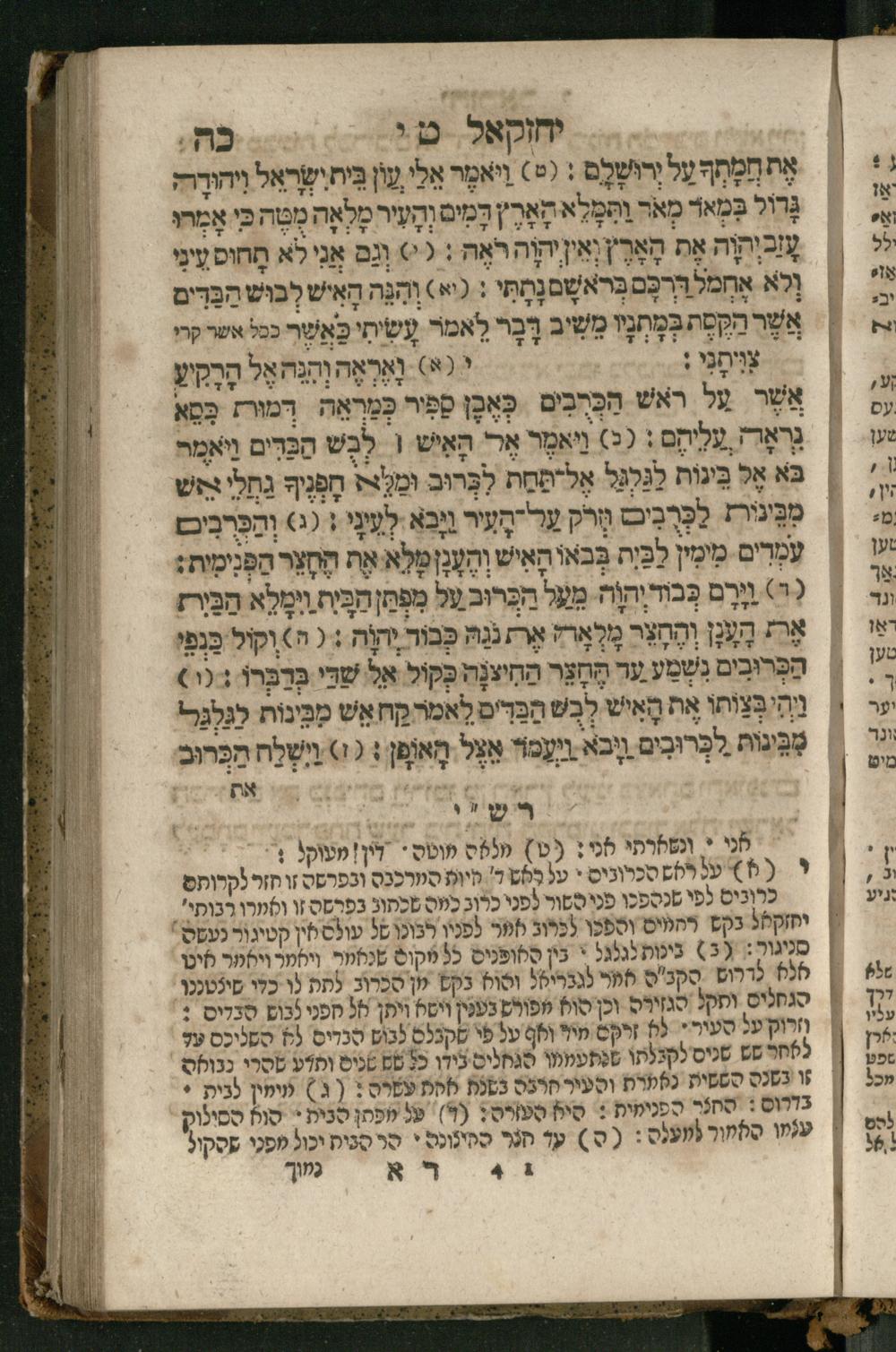 Ṿe-hu Sefer Yeḥezḳel / meturgam Ashkenazit u-mevoʾar, gam hitsagti bo perush ... Rashi z.ts.l. ... Ṿe-nilṿeh elaṿ perush Mikhlal yofi ...והוא ספר יחזקאל / מתורגם אשכנזית ומבואר, גם הצגתי בו פירוש ... רש״י זצ״ל ... ונלוה אליו פירוש מכלל יופי ...