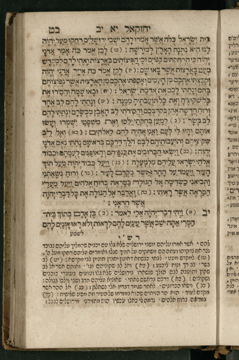 Ṿe-hu Sefer Yeḥezḳel / meturgam Ashkenazit u-mevoʾar, gam hitsagti bo perush ... Rashi z.ts.l. ... Ṿe-nilṿeh elaṿ perush Mikhlal yofi ...והוא ספר יחזקאל / מתורגם אשכנזית ומבואר, גם הצגתי בו פירוש ... רש״י זצ״ל ... ונלוה אליו פירוש מכלל יופי ...