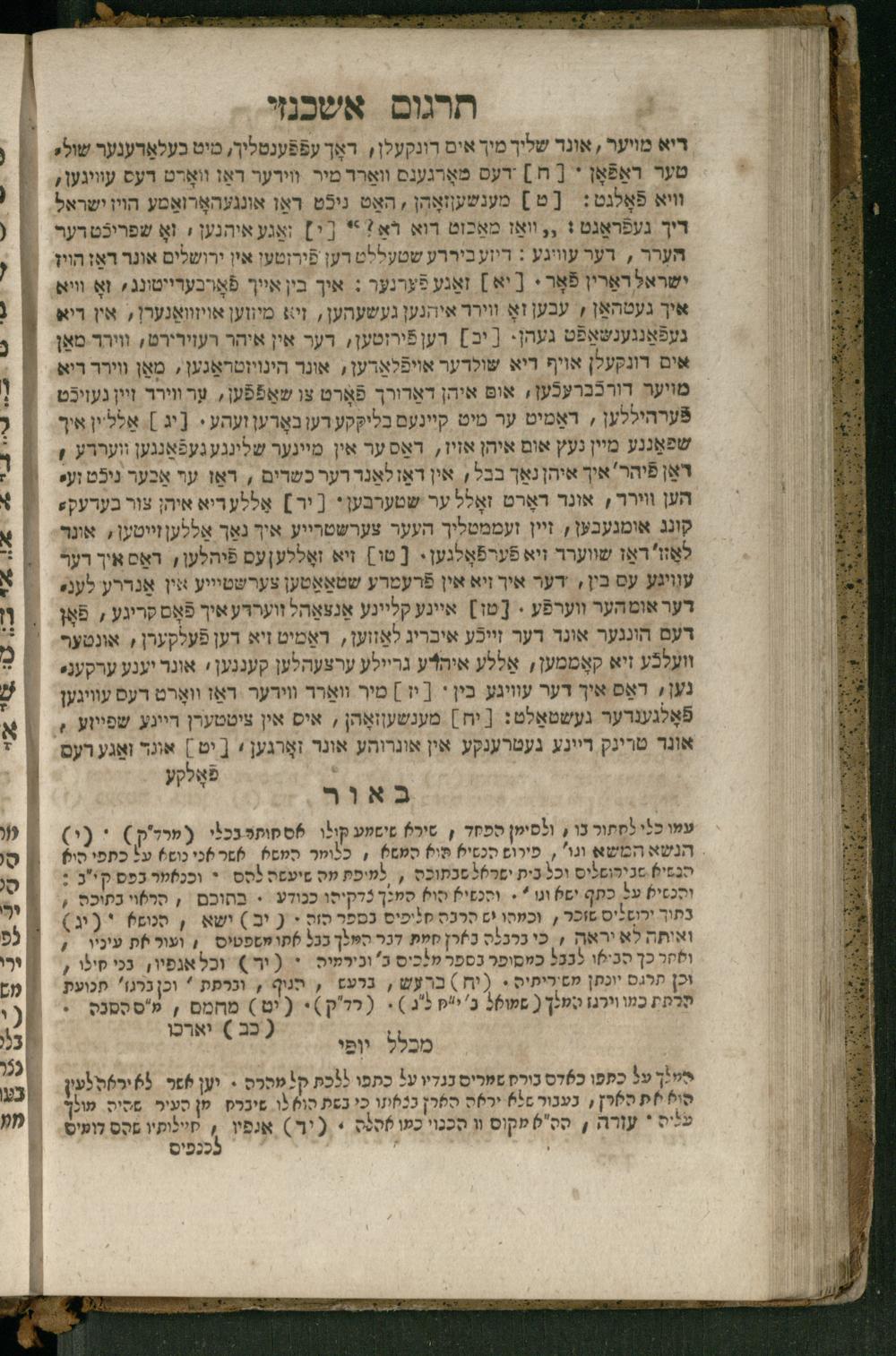 Ṿe-hu Sefer Yeḥezḳel / meturgam Ashkenazit u-mevoʾar, gam hitsagti bo perush ... Rashi z.ts.l. ... Ṿe-nilṿeh elaṿ perush Mikhlal yofi ...והוא ספר יחזקאל / מתורגם אשכנזית ומבואר, גם הצגתי בו פירוש ... רש״י זצ״ל ... ונלוה אליו פירוש מכלל יופי ...
