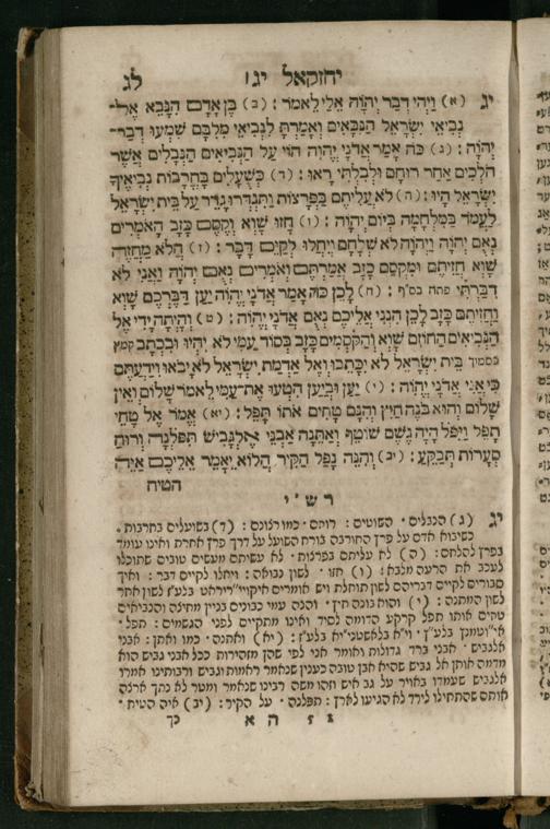Ṿe-hu Sefer Yeḥezḳel / meturgam Ashkenazit u-mevoʾar, gam hitsagti bo perush ... Rashi z.ts.l. ... Ṿe-nilṿeh elaṿ perush Mikhlal yofi ...והוא ספר יחזקאל / מתורגם אשכנזית ומבואר, גם הצגתי בו פירוש ... רש״י זצ״ל ... ונלוה אליו פירוש מכלל יופי ...