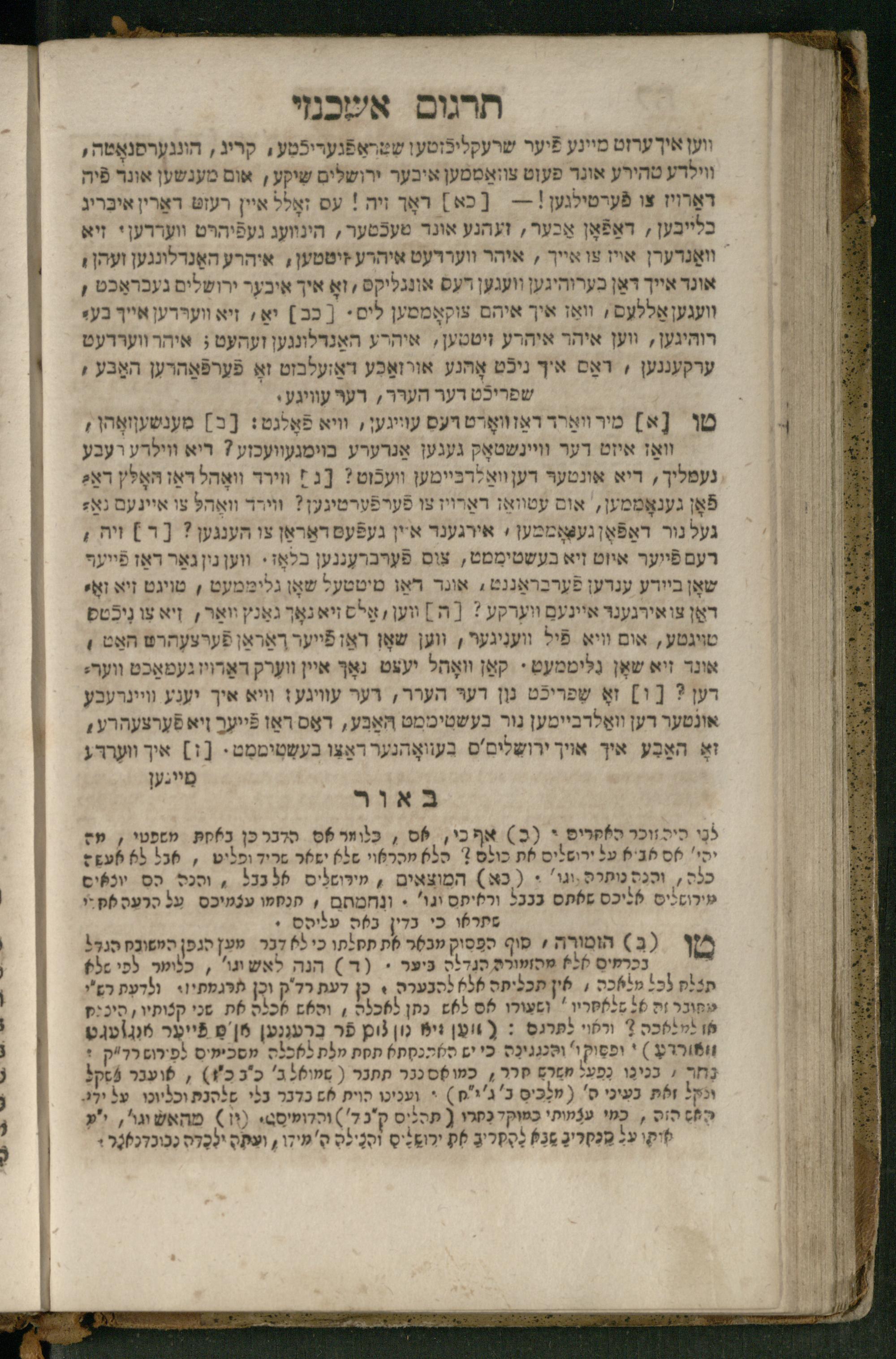 Ṿe-hu Sefer Yeḥezḳel / meturgam Ashkenazit u-mevoʾar, gam hitsagti bo perush ... Rashi z.ts.l. ... Ṿe-nilṿeh elaṿ perush Mikhlal yofi ...והוא ספר יחזקאל / מתורגם אשכנזית ומבואר, גם הצגתי בו פירוש ... רש״י זצ״ל ... ונלוה אליו פירוש מכלל יופי ...