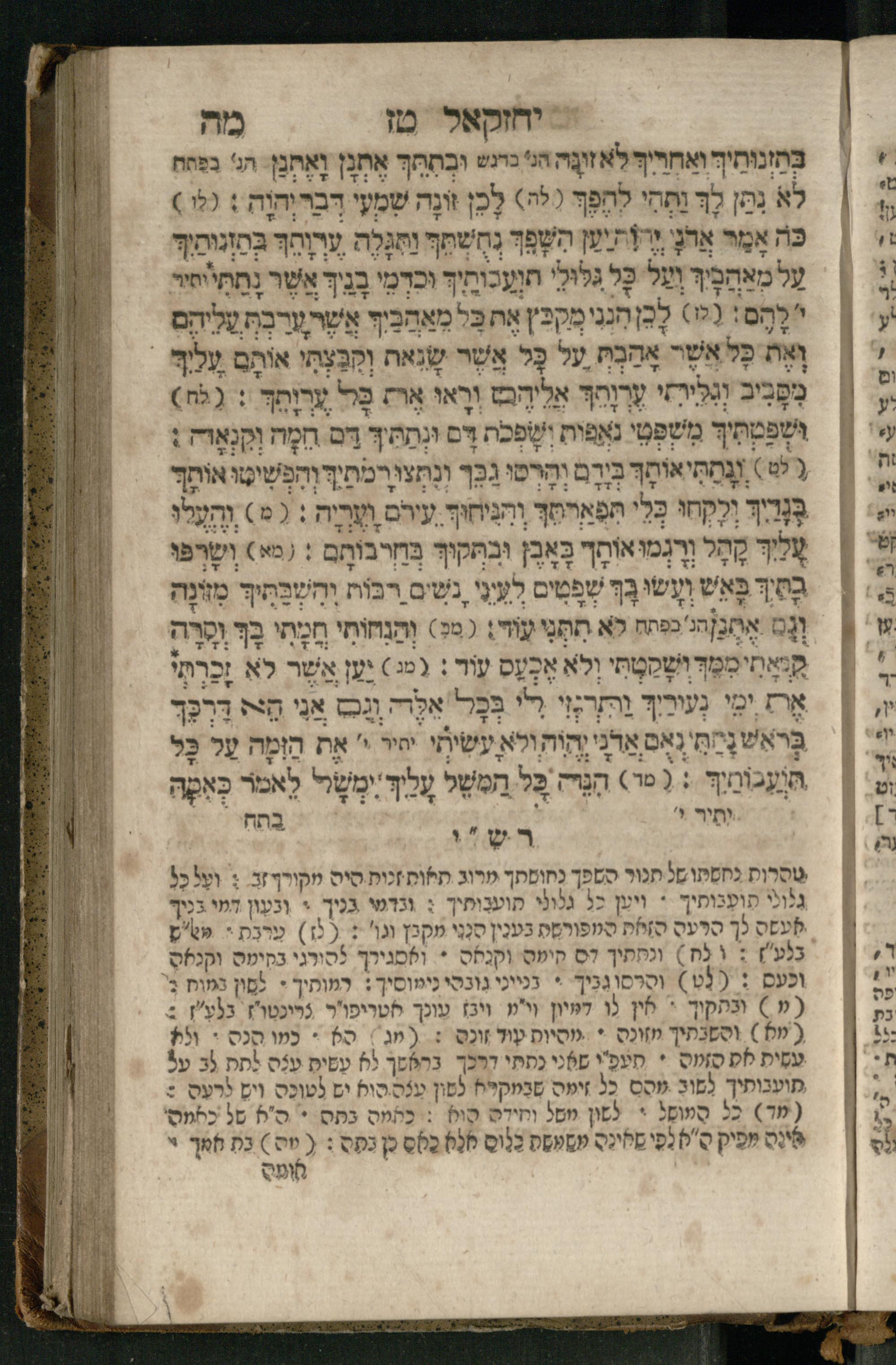 Ṿe-hu Sefer Yeḥezḳel / meturgam Ashkenazit u-mevoʾar, gam hitsagti bo perush ... Rashi z.ts.l. ... Ṿe-nilṿeh elaṿ perush Mikhlal yofi ...והוא ספר יחזקאל / מתורגם אשכנזית ומבואר, גם הצגתי בו פירוש ... רש״י זצ״ל ... ונלוה אליו פירוש מכלל יופי ...