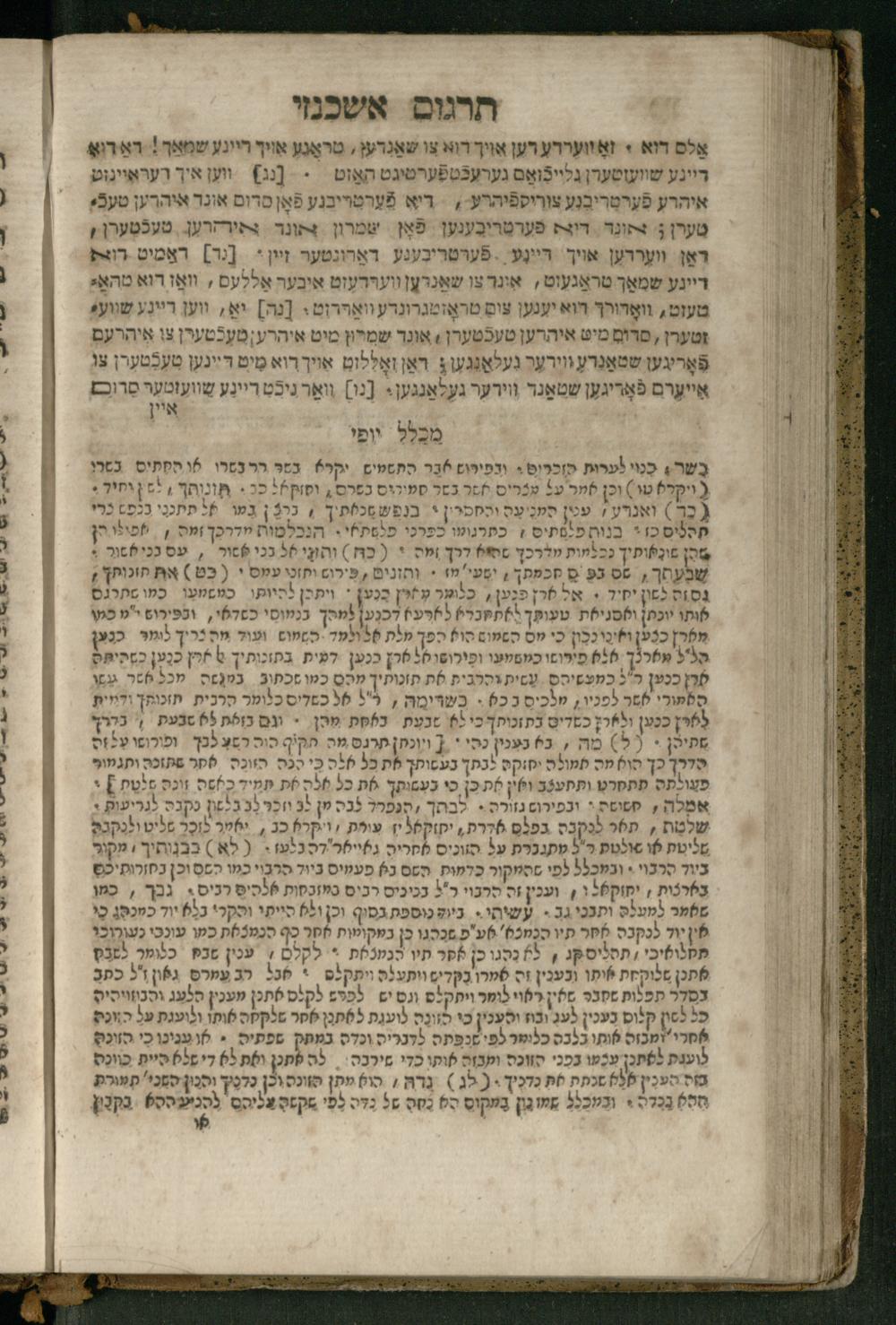Ṿe-hu Sefer Yeḥezḳel / meturgam Ashkenazit u-mevoʾar, gam hitsagti bo perush ... Rashi z.ts.l. ... Ṿe-nilṿeh elaṿ perush Mikhlal yofi ...והוא ספר יחזקאל / מתורגם אשכנזית ומבואר, גם הצגתי בו פירוש ... רש״י זצ״ל ... ונלוה אליו פירוש מכלל יופי ...