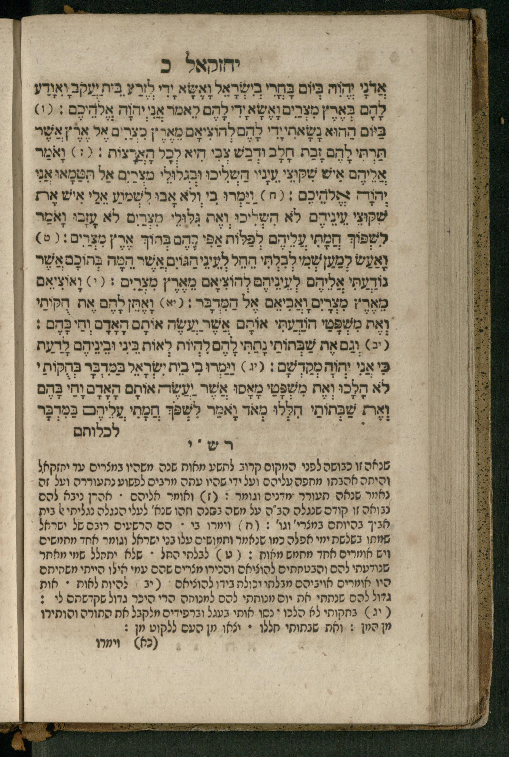 Ṿe-hu Sefer Yeḥezḳel / meturgam Ashkenazit u-mevoʾar, gam hitsagti bo perush ... Rashi z.ts.l. ... Ṿe-nilṿeh elaṿ perush Mikhlal yofi ...והוא ספר יחזקאל / מתורגם אשכנזית ומבואר, גם הצגתי בו פירוש ... רש״י זצ״ל ... ונלוה אליו פירוש מכלל יופי ...
