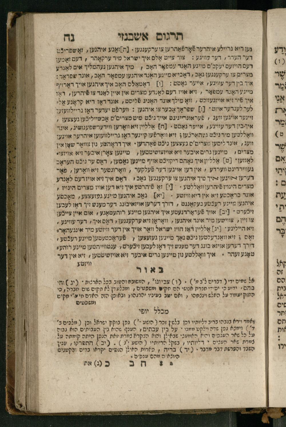 Ṿe-hu Sefer Yeḥezḳel / meturgam Ashkenazit u-mevoʾar, gam hitsagti bo perush ... Rashi z.ts.l. ... Ṿe-nilṿeh elaṿ perush Mikhlal yofi ...והוא ספר יחזקאל / מתורגם אשכנזית ומבואר, גם הצגתי בו פירוש ... רש״י זצ״ל ... ונלוה אליו פירוש מכלל יופי ...