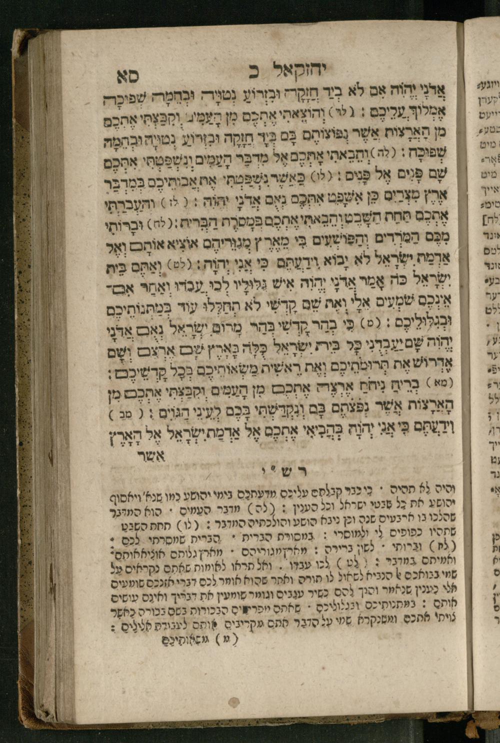 Ṿe-hu Sefer Yeḥezḳel / meturgam Ashkenazit u-mevoʾar, gam hitsagti bo perush ... Rashi z.ts.l. ... Ṿe-nilṿeh elaṿ perush Mikhlal yofi ...והוא ספר יחזקאל / מתורגם אשכנזית ומבואר, גם הצגתי בו פירוש ... רש״י זצ״ל ... ונלוה אליו פירוש מכלל יופי ...