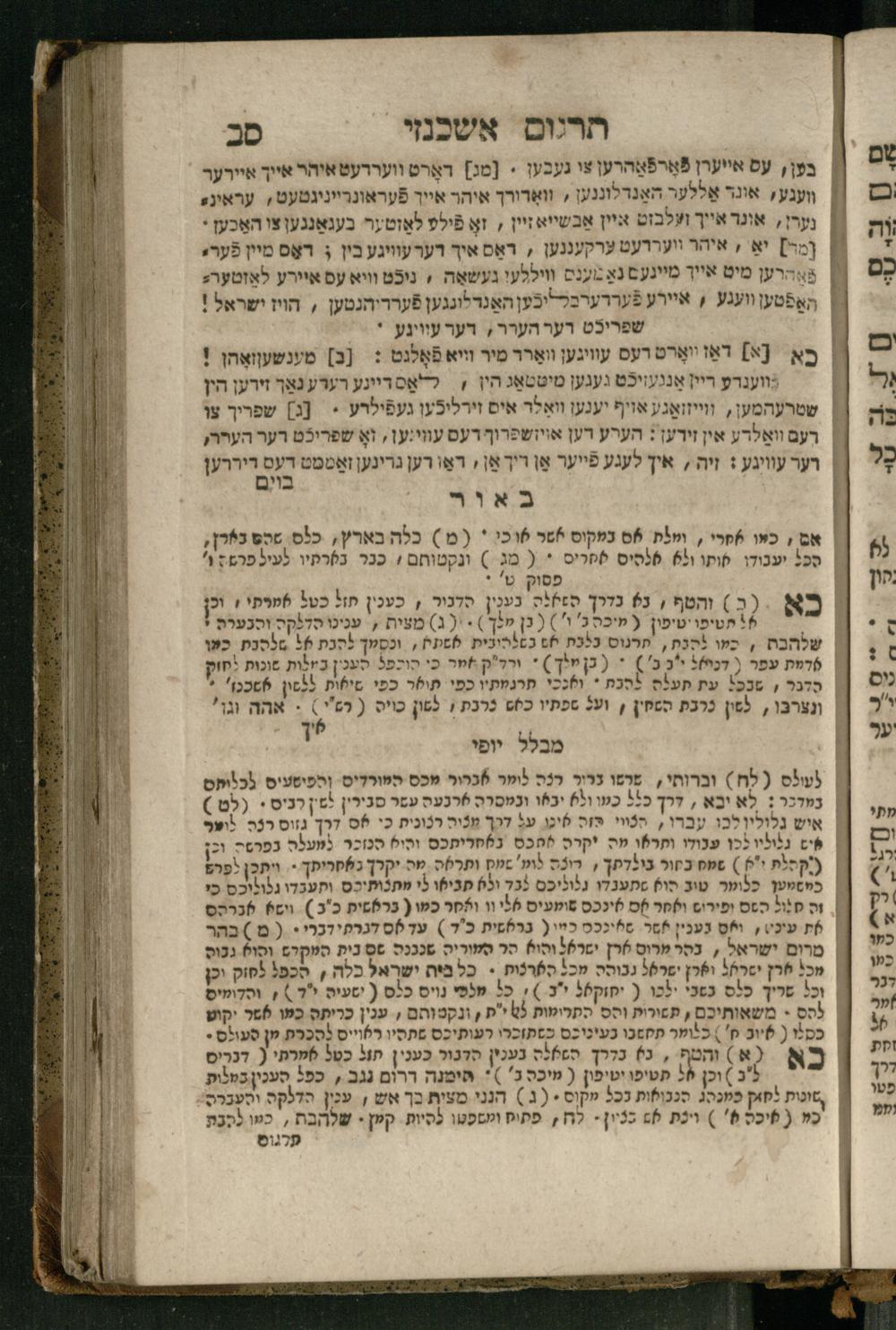 Ṿe-hu Sefer Yeḥezḳel / meturgam Ashkenazit u-mevoʾar, gam hitsagti bo perush ... Rashi z.ts.l. ... Ṿe-nilṿeh elaṿ perush Mikhlal yofi ...והוא ספר יחזקאל / מתורגם אשכנזית ומבואר, גם הצגתי בו פירוש ... רש״י זצ״ל ... ונלוה אליו פירוש מכלל יופי ...