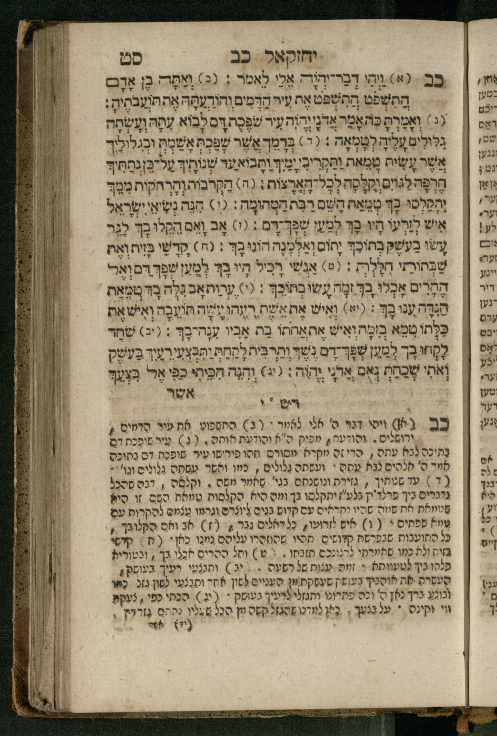 Ṿe-hu Sefer Yeḥezḳel / meturgam Ashkenazit u-mevoʾar, gam hitsagti bo perush ... Rashi z.ts.l. ... Ṿe-nilṿeh elaṿ perush Mikhlal yofi ...והוא ספר יחזקאל / מתורגם אשכנזית ומבואר, גם הצגתי בו פירוש ... רש״י זצ״ל ... ונלוה אליו פירוש מכלל יופי ...