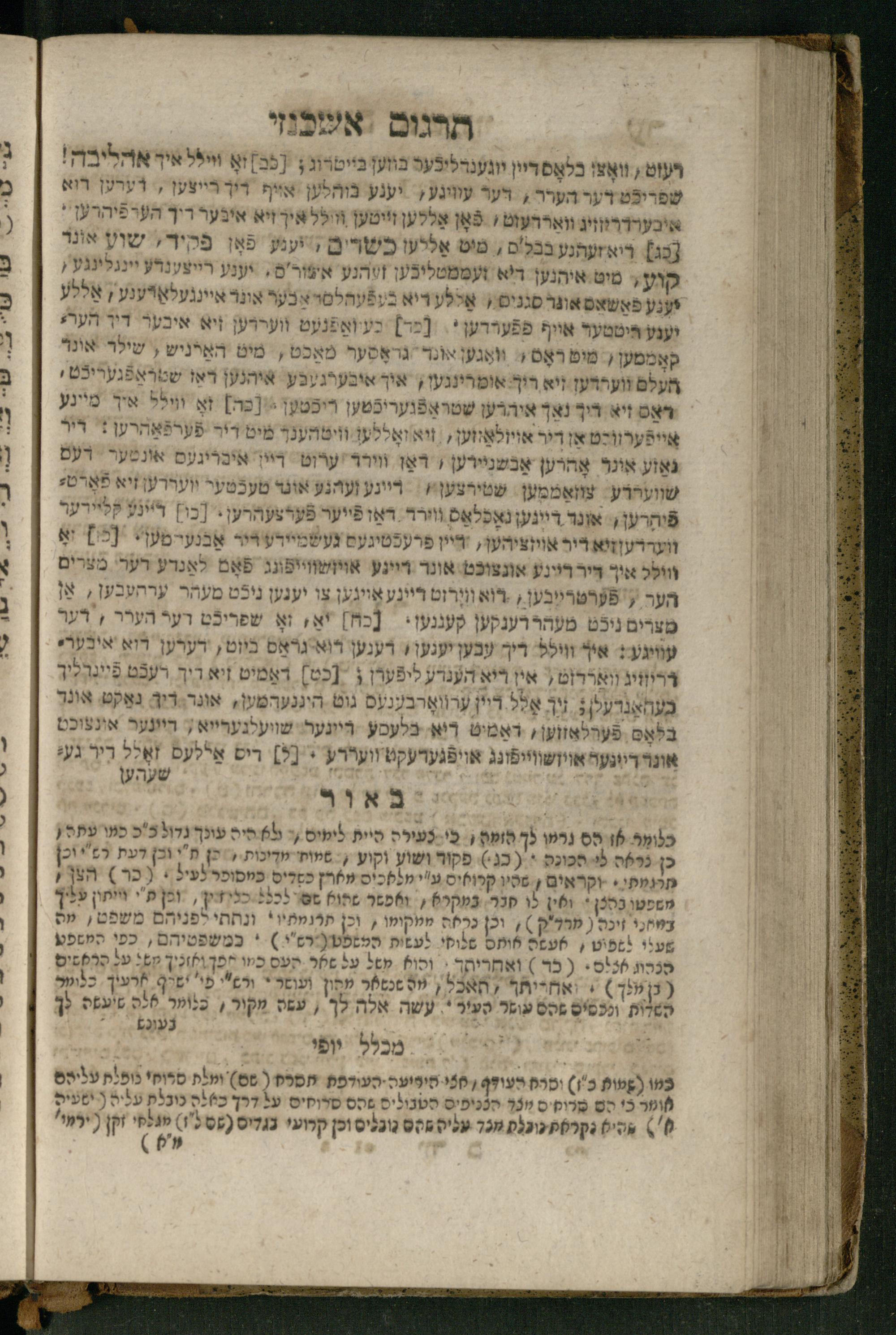 Ṿe-hu Sefer Yeḥezḳel / meturgam Ashkenazit u-mevoʾar, gam hitsagti bo perush ... Rashi z.ts.l. ... Ṿe-nilṿeh elaṿ perush Mikhlal yofi ...והוא ספר יחזקאל / מתורגם אשכנזית ומבואר, גם הצגתי בו פירוש ... רש״י זצ״ל ... ונלוה אליו פירוש מכלל יופי ...