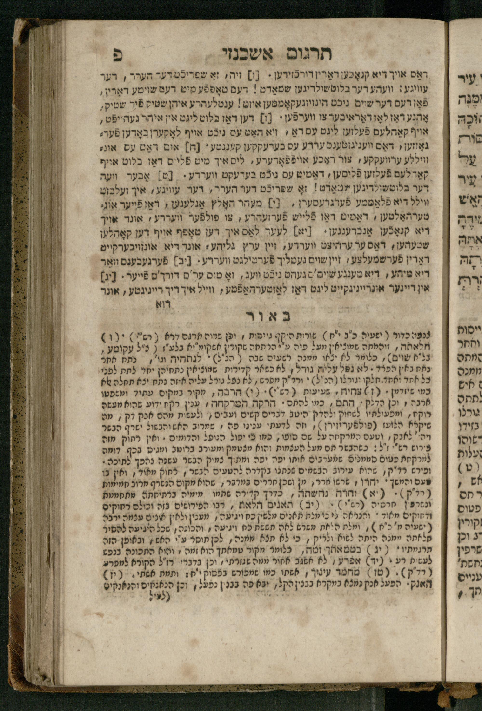 Ṿe-hu Sefer Yeḥezḳel / meturgam Ashkenazit u-mevoʾar, gam hitsagti bo perush ... Rashi z.ts.l. ... Ṿe-nilṿeh elaṿ perush Mikhlal yofi ...והוא ספר יחזקאל / מתורגם אשכנזית ומבואר, גם הצגתי בו פירוש ... רש״י זצ״ל ... ונלוה אליו פירוש מכלל יופי ...