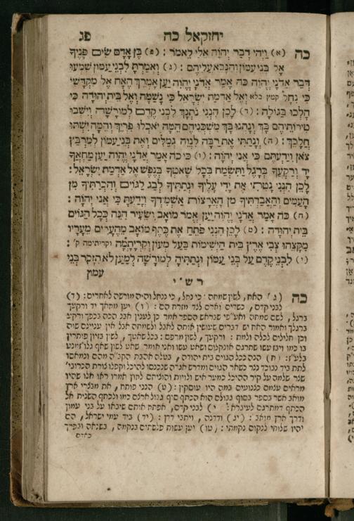 Ṿe-hu Sefer Yeḥezḳel / meturgam Ashkenazit u-mevoʾar, gam hitsagti bo perush ... Rashi z.ts.l. ... Ṿe-nilṿeh elaṿ perush Mikhlal yofi ...והוא ספר יחזקאל / מתורגם אשכנזית ומבואר, גם הצגתי בו פירוש ... רש״י זצ״ל ... ונלוה אליו פירוש מכלל יופי ...