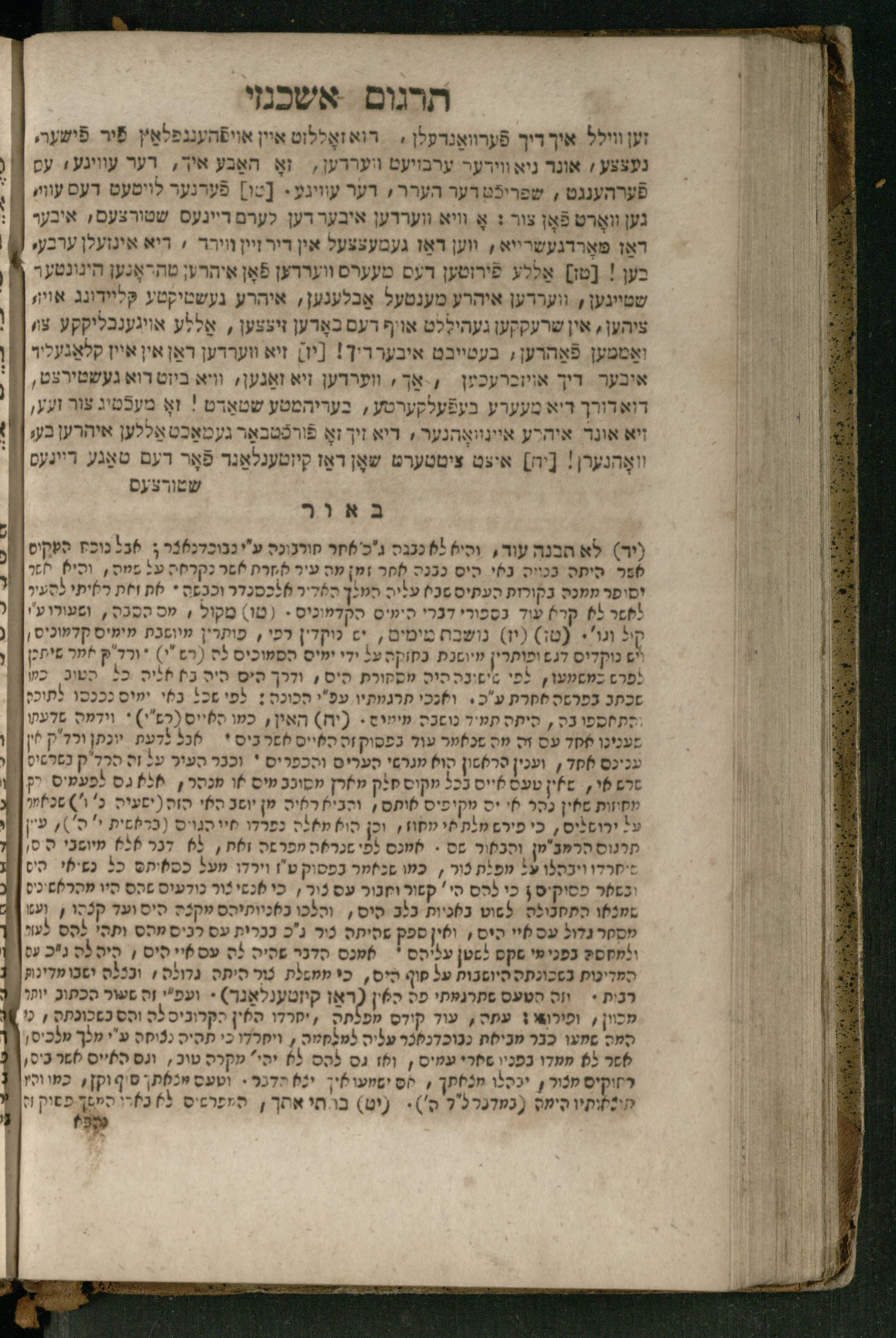 Ṿe-hu Sefer Yeḥezḳel / meturgam Ashkenazit u-mevoʾar, gam hitsagti bo perush ... Rashi z.ts.l. ... Ṿe-nilṿeh elaṿ perush Mikhlal yofi ...והוא ספר יחזקאל / מתורגם אשכנזית ומבואר, גם הצגתי בו פירוש ... רש״י זצ״ל ... ונלוה אליו פירוש מכלל יופי ...