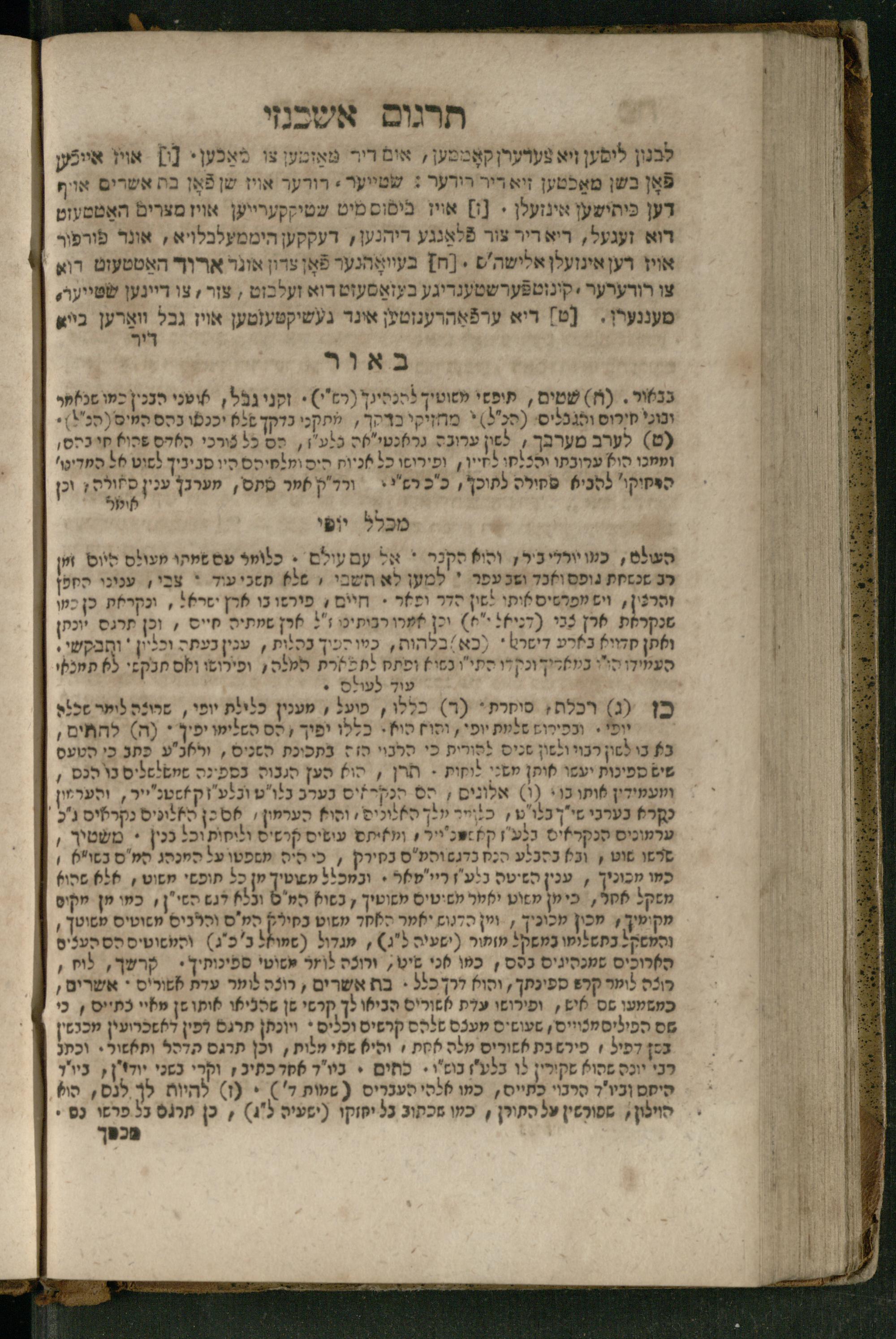 Ṿe-hu Sefer Yeḥezḳel / meturgam Ashkenazit u-mevoʾar, gam hitsagti bo perush ... Rashi z.ts.l. ... Ṿe-nilṿeh elaṿ perush Mikhlal yofi ...והוא ספר יחזקאל / מתורגם אשכנזית ומבואר, גם הצגתי בו פירוש ... רש״י זצ״ל ... ונלוה אליו פירוש מכלל יופי ...