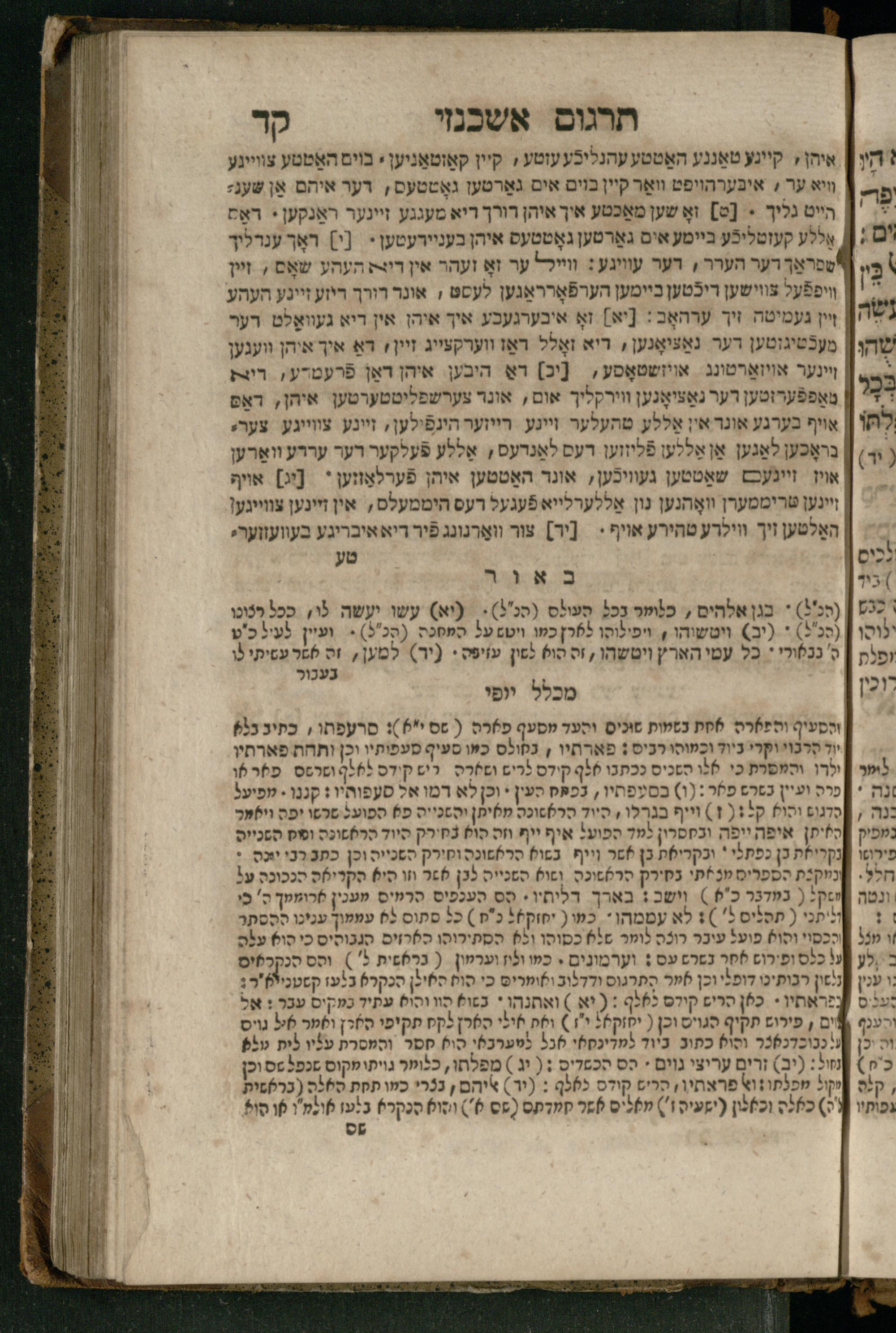 Ṿe-hu Sefer Yeḥezḳel / meturgam Ashkenazit u-mevoʾar, gam hitsagti bo perush ... Rashi z.ts.l. ... Ṿe-nilṿeh elaṿ perush Mikhlal yofi ...והוא ספר יחזקאל / מתורגם אשכנזית ומבואר, גם הצגתי בו פירוש ... רש״י זצ״ל ... ונלוה אליו פירוש מכלל יופי ...