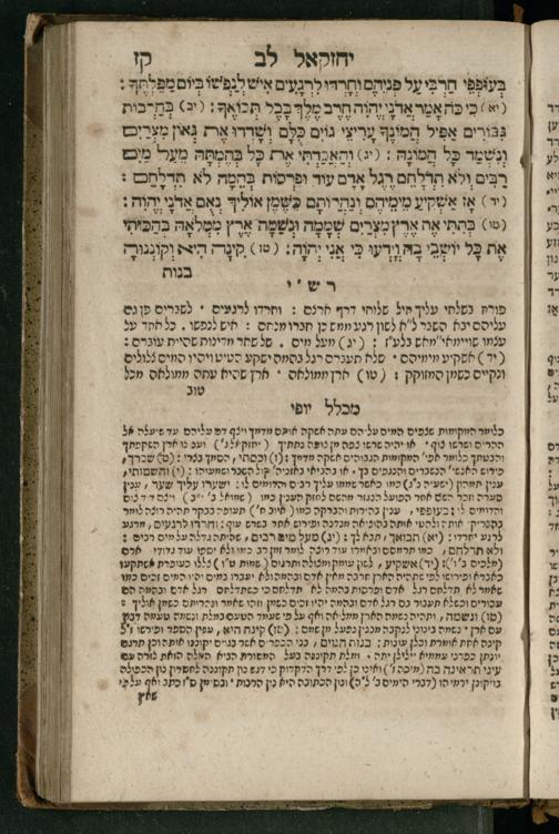 Ṿe-hu Sefer Yeḥezḳel / meturgam Ashkenazit u-mevoʾar, gam hitsagti bo perush ... Rashi z.ts.l. ... Ṿe-nilṿeh elaṿ perush Mikhlal yofi ...והוא ספר יחזקאל / מתורגם אשכנזית ומבואר, גם הצגתי בו פירוש ... רש״י זצ״ל ... ונלוה אליו פירוש מכלל יופי ...