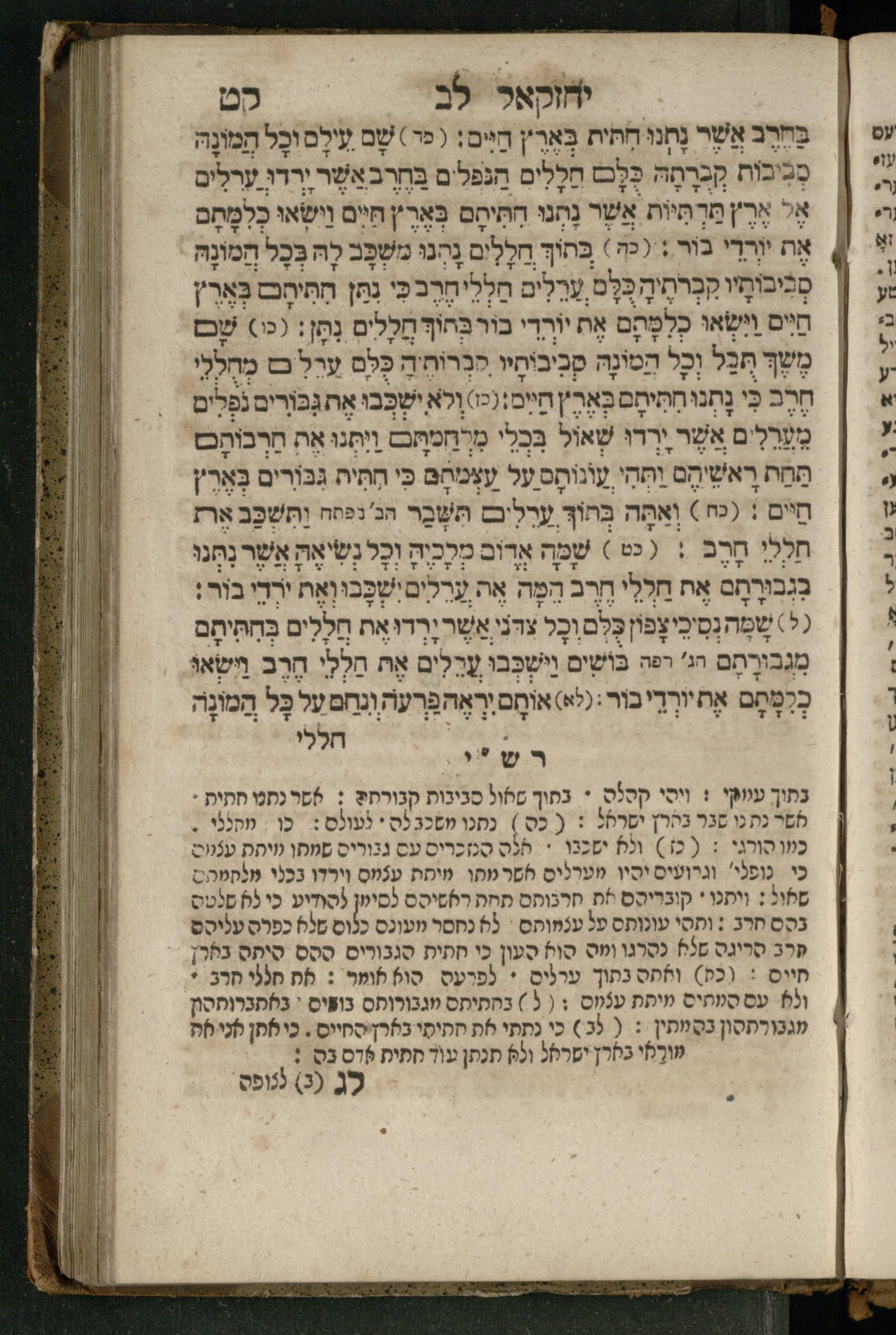 Ṿe-hu Sefer Yeḥezḳel / meturgam Ashkenazit u-mevoʾar, gam hitsagti bo perush ... Rashi z.ts.l. ... Ṿe-nilṿeh elaṿ perush Mikhlal yofi ...והוא ספר יחזקאל / מתורגם אשכנזית ומבואר, גם הצגתי בו פירוש ... רש״י זצ״ל ... ונלוה אליו פירוש מכלל יופי ...