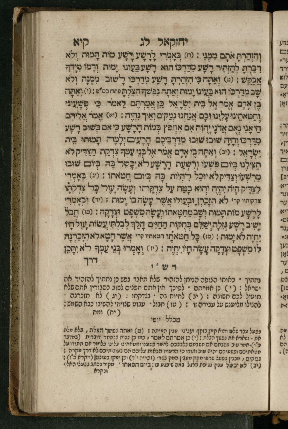 Ṿe-hu Sefer Yeḥezḳel / meturgam Ashkenazit u-mevoʾar, gam hitsagti bo perush ... Rashi z.ts.l. ... Ṿe-nilṿeh elaṿ perush Mikhlal yofi ...והוא ספר יחזקאל / מתורגם אשכנזית ומבואר, גם הצגתי בו פירוש ... רש״י זצ״ל ... ונלוה אליו פירוש מכלל יופי ...