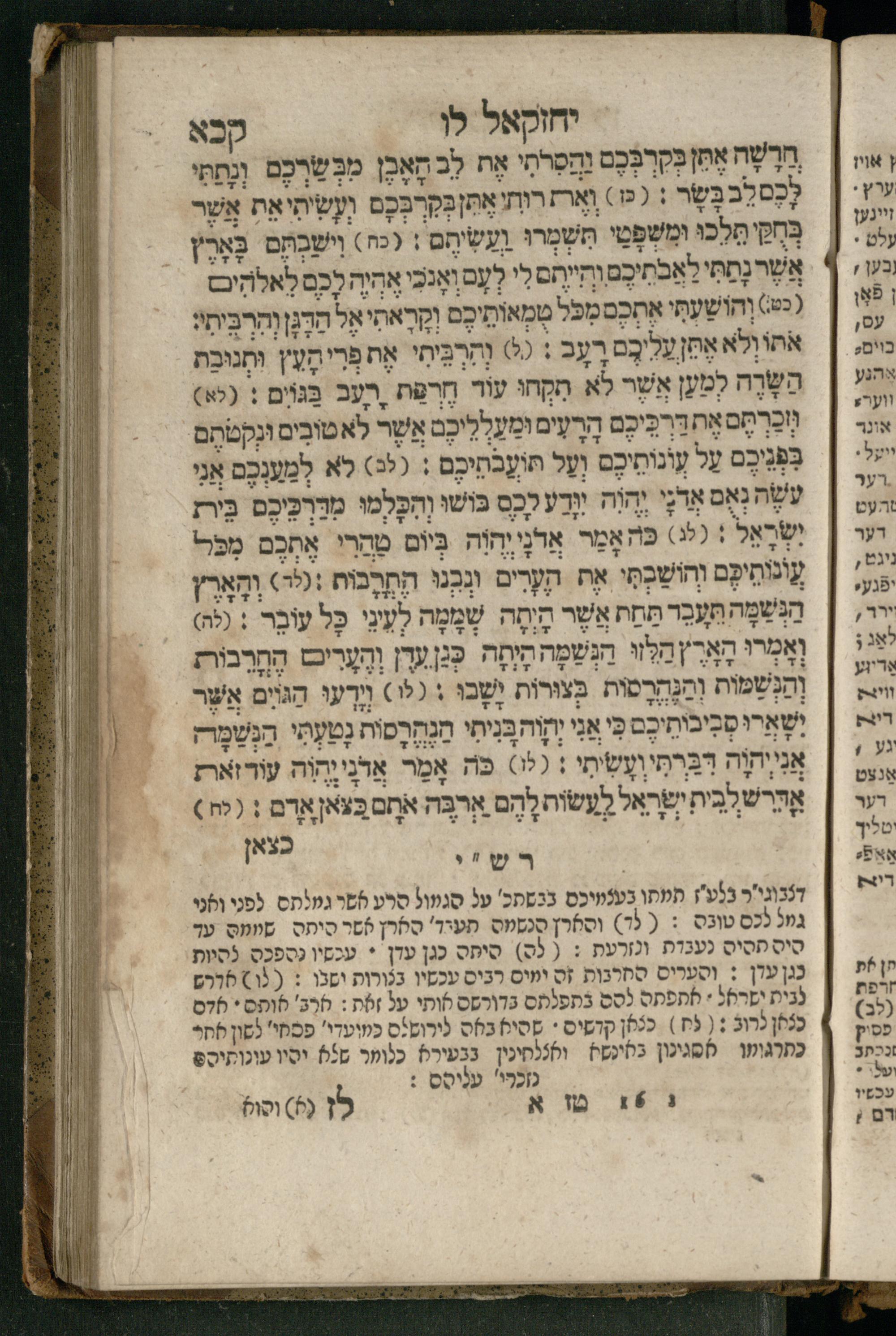 Ṿe-hu Sefer Yeḥezḳel / meturgam Ashkenazit u-mevoʾar, gam hitsagti bo perush ... Rashi z.ts.l. ... Ṿe-nilṿeh elaṿ perush Mikhlal yofi ...והוא ספר יחזקאל / מתורגם אשכנזית ומבואר, גם הצגתי בו פירוש ... רש״י זצ״ל ... ונלוה אליו פירוש מכלל יופי ...