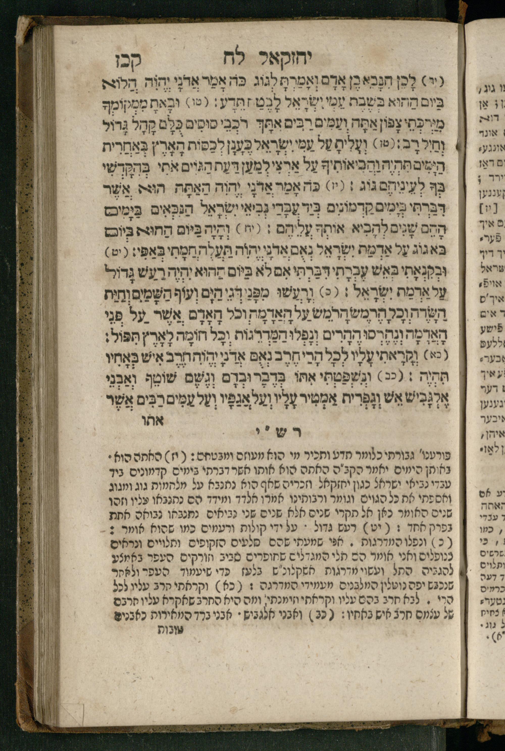 Ṿe-hu Sefer Yeḥezḳel / meturgam Ashkenazit u-mevoʾar, gam hitsagti bo perush ... Rashi z.ts.l. ... Ṿe-nilṿeh elaṿ perush Mikhlal yofi ...והוא ספר יחזקאל / מתורגם אשכנזית ומבואר, גם הצגתי בו פירוש ... רש״י זצ״ל ... ונלוה אליו פירוש מכלל יופי ...