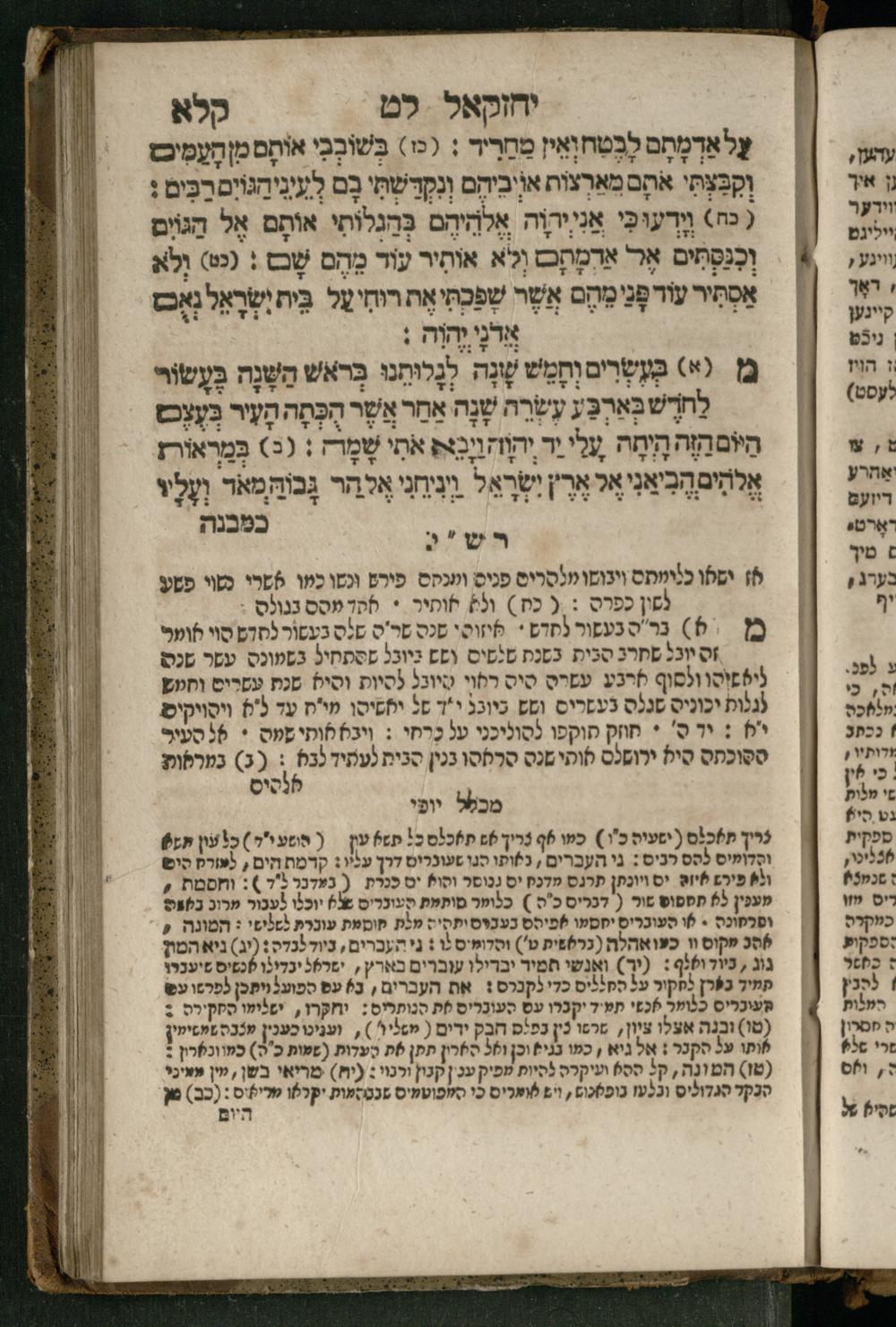 Ṿe-hu Sefer Yeḥezḳel / meturgam Ashkenazit u-mevoʾar, gam hitsagti bo perush ... Rashi z.ts.l. ... Ṿe-nilṿeh elaṿ perush Mikhlal yofi ...והוא ספר יחזקאל / מתורגם אשכנזית ומבואר, גם הצגתי בו פירוש ... רש״י זצ״ל ... ונלוה אליו פירוש מכלל יופי ...