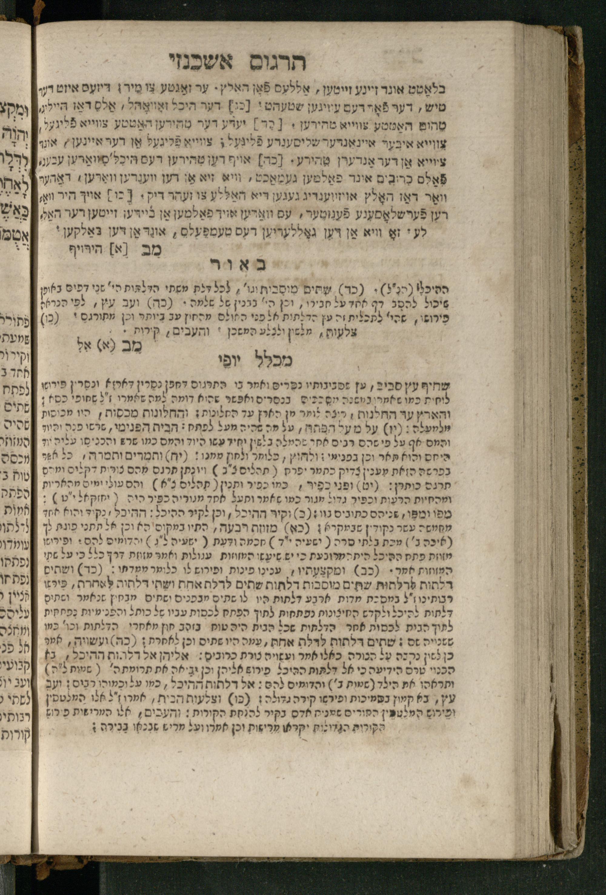 Ṿe-hu Sefer Yeḥezḳel / meturgam Ashkenazit u-mevoʾar, gam hitsagti bo perush ... Rashi z.ts.l. ... Ṿe-nilṿeh elaṿ perush Mikhlal yofi ...והוא ספר יחזקאל / מתורגם אשכנזית ומבואר, גם הצגתי בו פירוש ... רש״י זצ״ל ... ונלוה אליו פירוש מכלל יופי ...