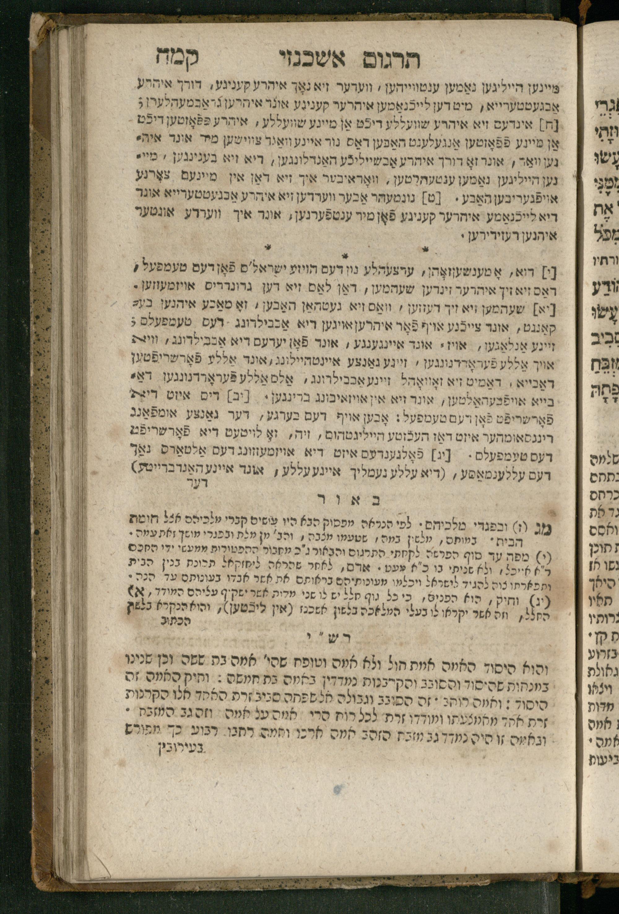 Ṿe-hu Sefer Yeḥezḳel / meturgam Ashkenazit u-mevoʾar, gam hitsagti bo perush ... Rashi z.ts.l. ... Ṿe-nilṿeh elaṿ perush Mikhlal yofi ...והוא ספר יחזקאל / מתורגם אשכנזית ומבואר, גם הצגתי בו פירוש ... רש״י זצ״ל ... ונלוה אליו פירוש מכלל יופי ...
