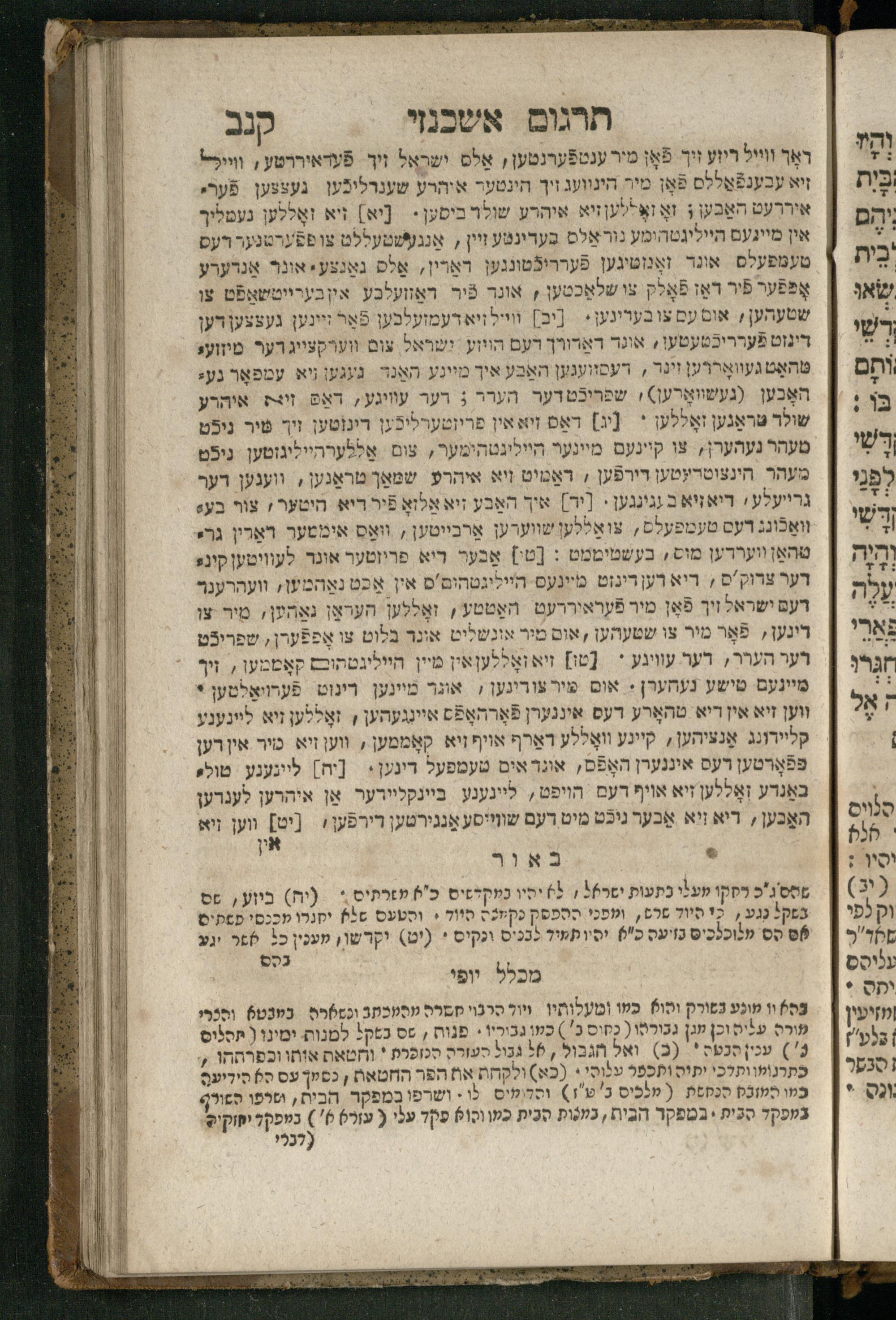 Ṿe-hu Sefer Yeḥezḳel / meturgam Ashkenazit u-mevoʾar, gam hitsagti bo perush ... Rashi z.ts.l. ... Ṿe-nilṿeh elaṿ perush Mikhlal yofi ...והוא ספר יחזקאל / מתורגם אשכנזית ומבואר, גם הצגתי בו פירוש ... רש״י זצ״ל ... ונלוה אליו פירוש מכלל יופי ...