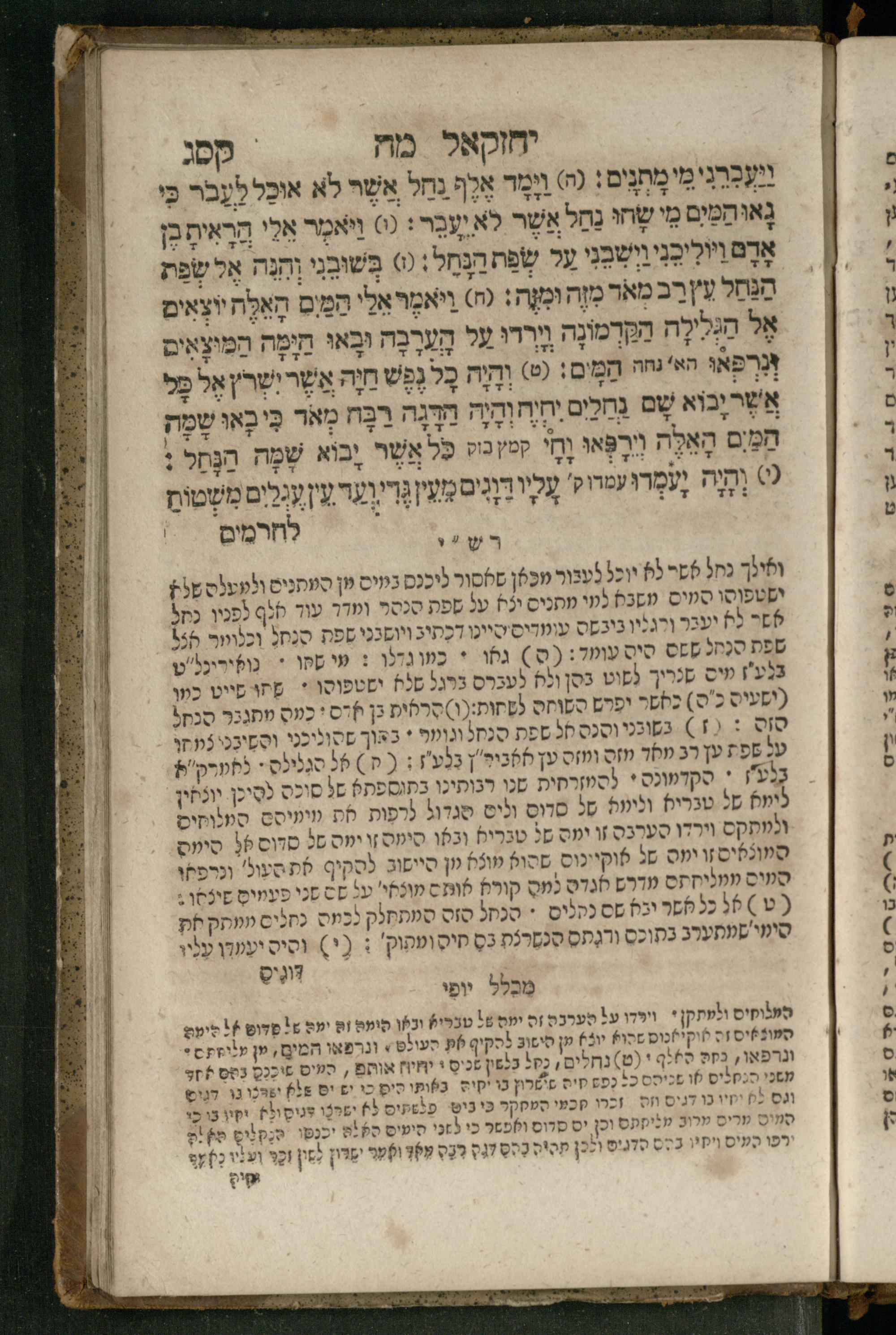 Ṿe-hu Sefer Yeḥezḳel / meturgam Ashkenazit u-mevoʾar, gam hitsagti bo perush ... Rashi z.ts.l. ... Ṿe-nilṿeh elaṿ perush Mikhlal yofi ...והוא ספר יחזקאל / מתורגם אשכנזית ומבואר, גם הצגתי בו פירוש ... רש״י זצ״ל ... ונלוה אליו פירוש מכלל יופי ...