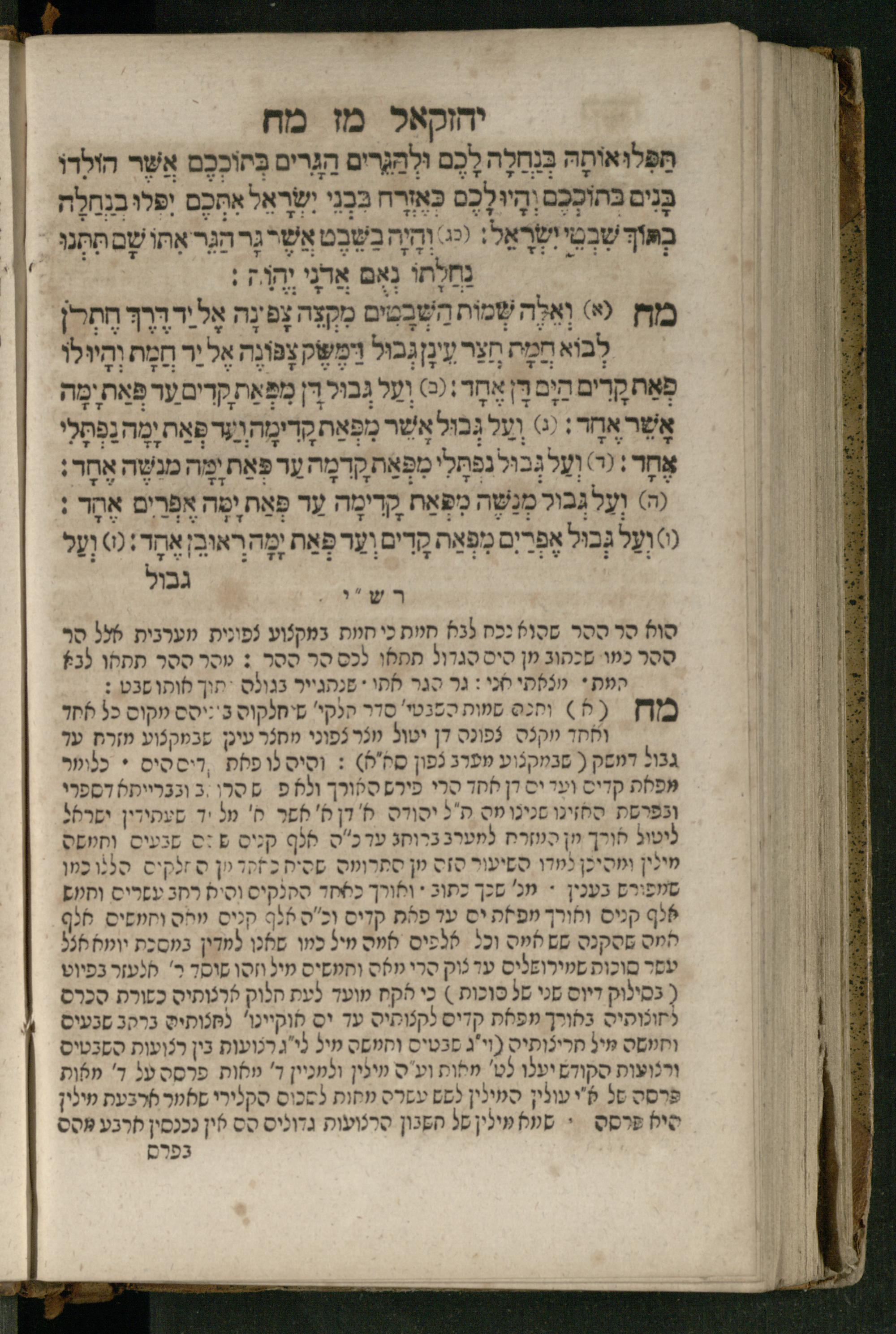 Ṿe-hu Sefer Yeḥezḳel / meturgam Ashkenazit u-mevoʾar, gam hitsagti bo perush ... Rashi z.ts.l. ... Ṿe-nilṿeh elaṿ perush Mikhlal yofi ...והוא ספר יחזקאל / מתורגם אשכנזית ומבואר, גם הצגתי בו פירוש ... רש״י זצ״ל ... ונלוה אליו פירוש מכלל יופי ...