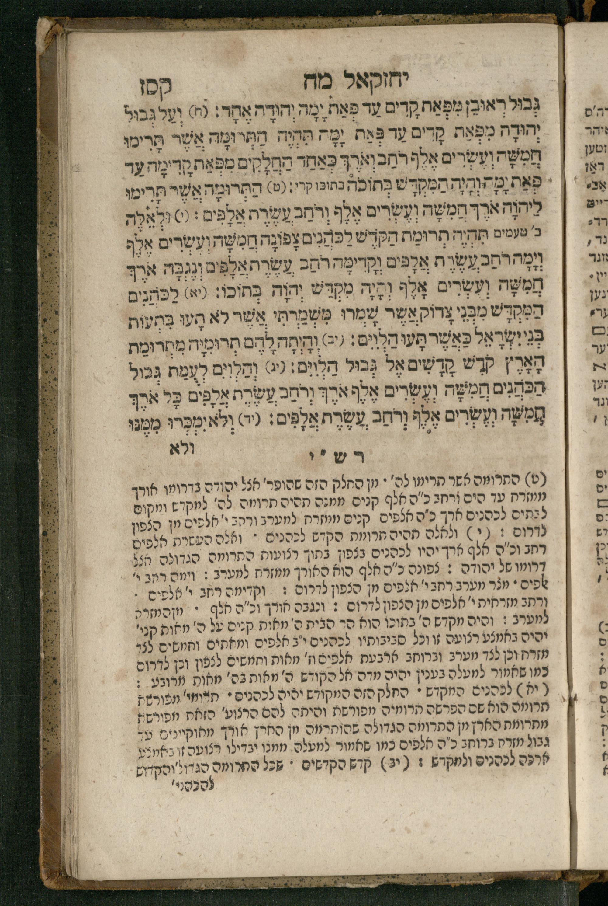 Ṿe-hu Sefer Yeḥezḳel / meturgam Ashkenazit u-mevoʾar, gam hitsagti bo perush ... Rashi z.ts.l. ... Ṿe-nilṿeh elaṿ perush Mikhlal yofi ...והוא ספר יחזקאל / מתורגם אשכנזית ומבואר, גם הצגתי בו פירוש ... רש״י זצ״ל ... ונלוה אליו פירוש מכלל יופי ...