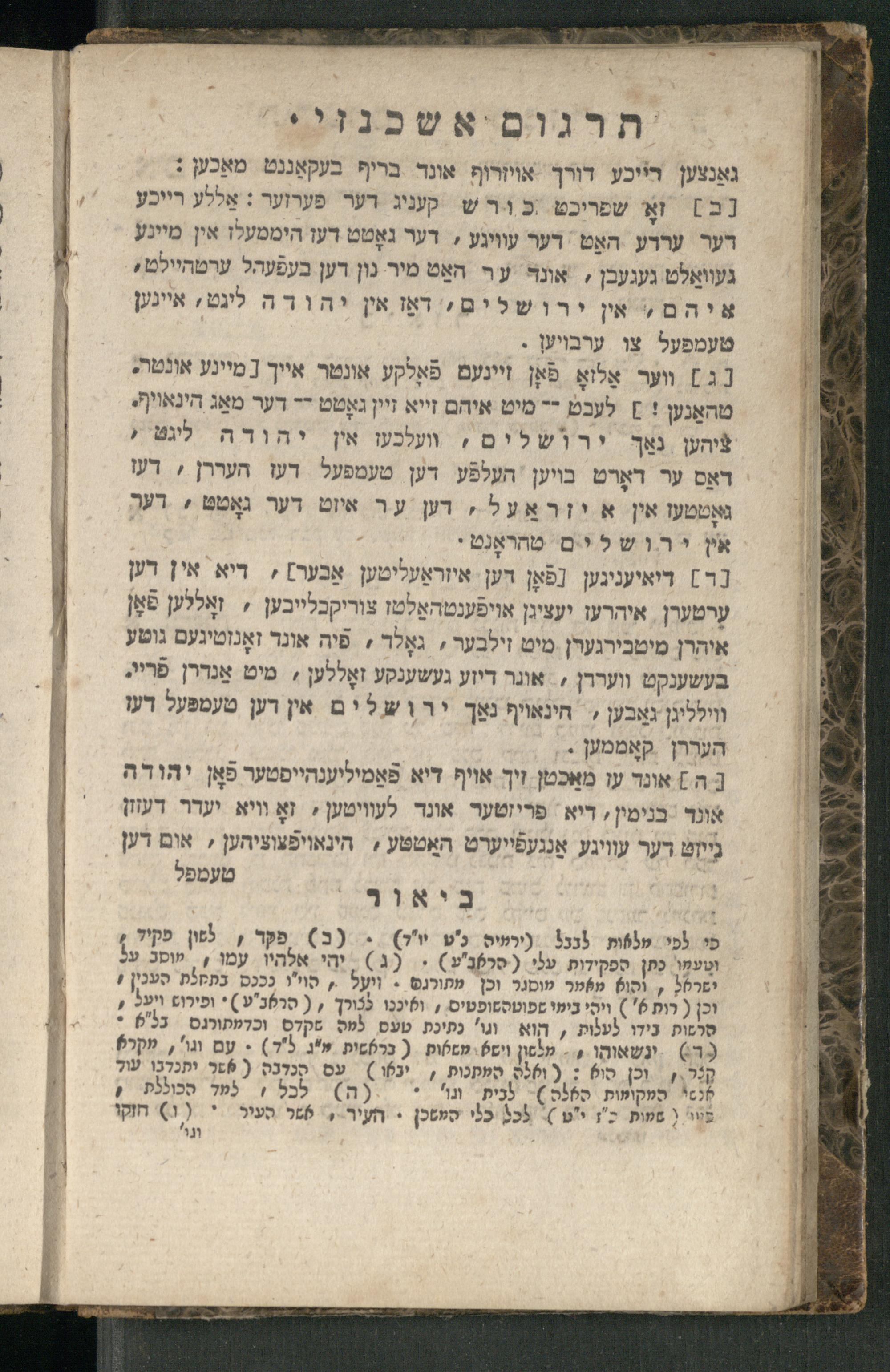 Sefer ʿEzra / miṭ iberzeṭtsung und biʾer fon Heyman Shṿabakher und Daṿid Oṭtenzoser, gam hitsagti bo perush ... Rashi z.ts.l., ṿe-nilṿeh elaṿ perush Mikhlal yofi ...ספר עזרא / מיט איבערזעטצונג אונד ביאור פאן היימאן שוואבאכער אונד דוד אטטענזאסער, גם הצגתי בו פירוש ... רש״י זצ״ל, ונלוה אליו פירוש מכלל יופי ...
