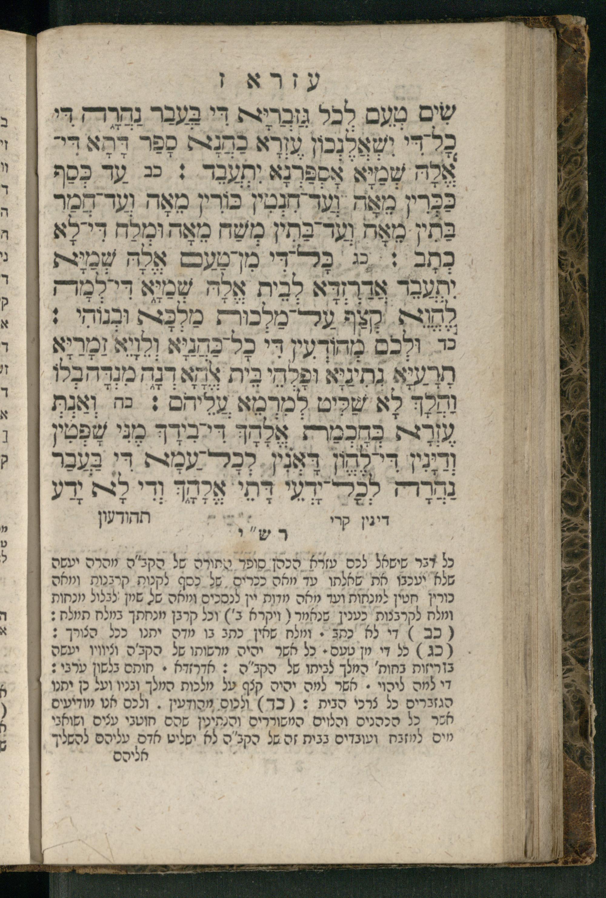 Sefer ʿEzra / miṭ iberzeṭtsung und biʾer fon Heyman Shṿabakher und Daṿid Oṭtenzoser, gam hitsagti bo perush ... Rashi z.ts.l., ṿe-nilṿeh elaṿ perush Mikhlal yofi ...ספר עזרא / מיט איבערזעטצונג אונד ביאור פאן היימאן שוואבאכער אונד דוד אטטענזאסער, גם הצגתי בו פירוש ... רש״י זצ״ל, ונלוה אליו פירוש מכלל יופי ...
