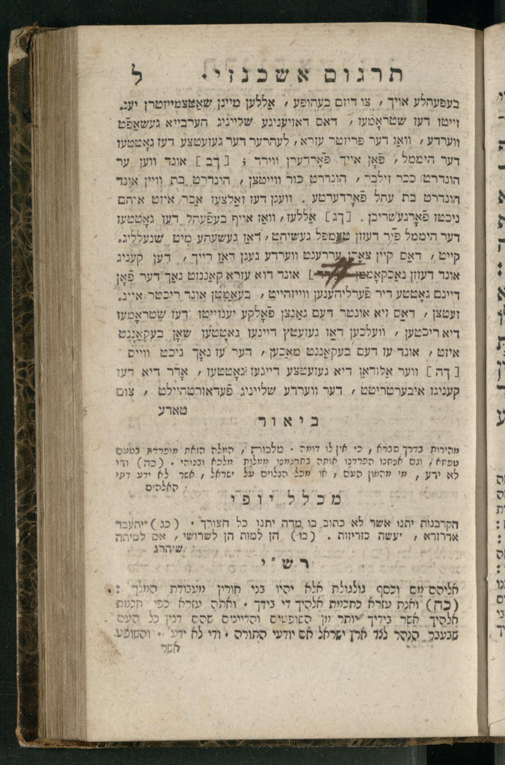 Sefer ʿEzra / miṭ iberzeṭtsung und biʾer fon Heyman Shṿabakher und Daṿid Oṭtenzoser, gam hitsagti bo perush ... Rashi z.ts.l., ṿe-nilṿeh elaṿ perush Mikhlal yofi ...ספר עזרא / מיט איבערזעטצונג אונד ביאור פאן היימאן שוואבאכער אונד דוד אטטענזאסער, גם הצגתי בו פירוש ... רש״י זצ״ל, ונלוה אליו פירוש מכלל יופי ...