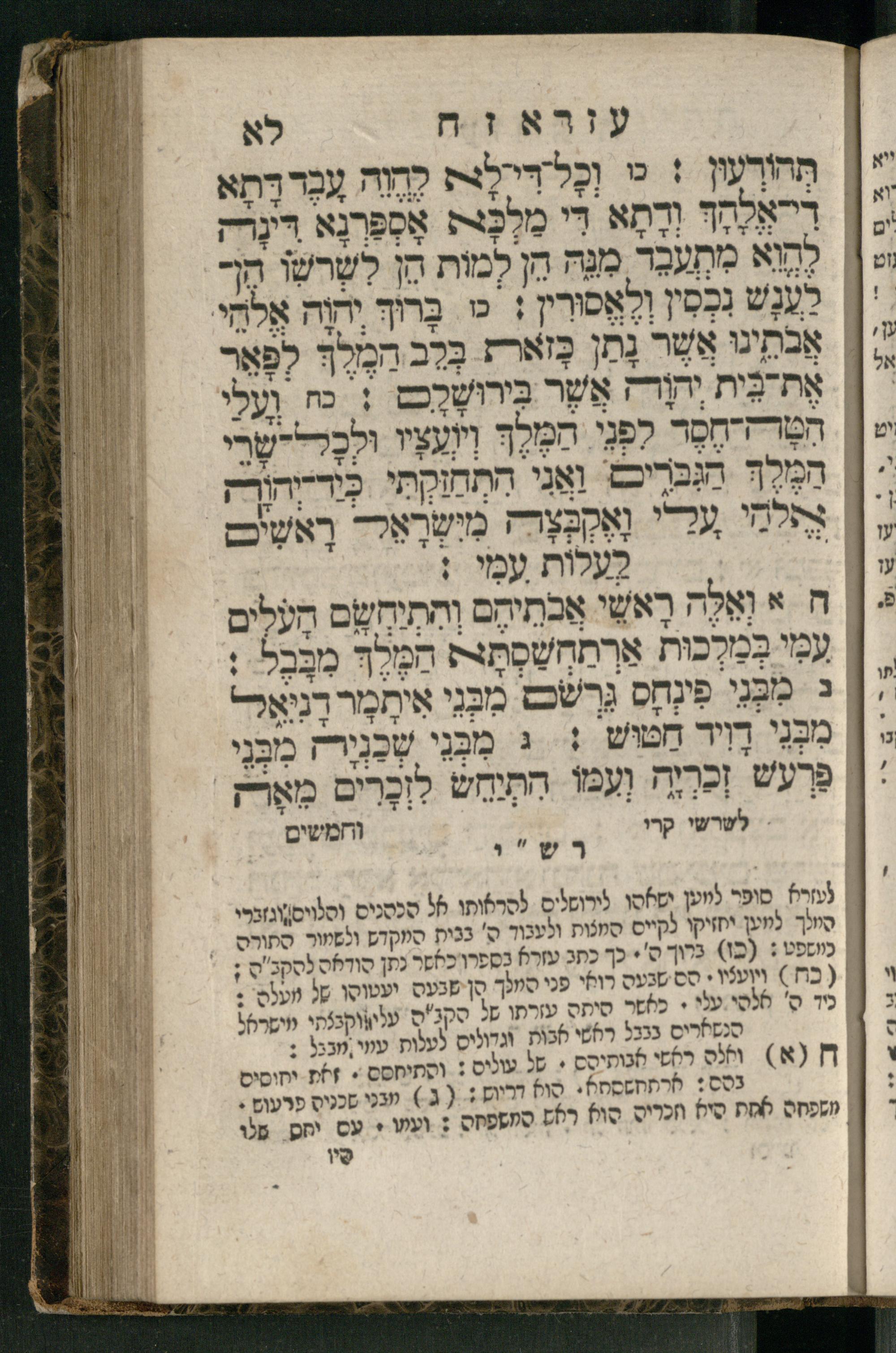 Sefer ʿEzra / miṭ iberzeṭtsung und biʾer fon Heyman Shṿabakher und Daṿid Oṭtenzoser, gam hitsagti bo perush ... Rashi z.ts.l., ṿe-nilṿeh elaṿ perush Mikhlal yofi ...ספר עזרא / מיט איבערזעטצונג אונד ביאור פאן היימאן שוואבאכער אונד דוד אטטענזאסער, גם הצגתי בו פירוש ... רש״י זצ״ל, ונלוה אליו פירוש מכלל יופי ...