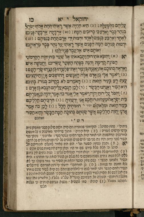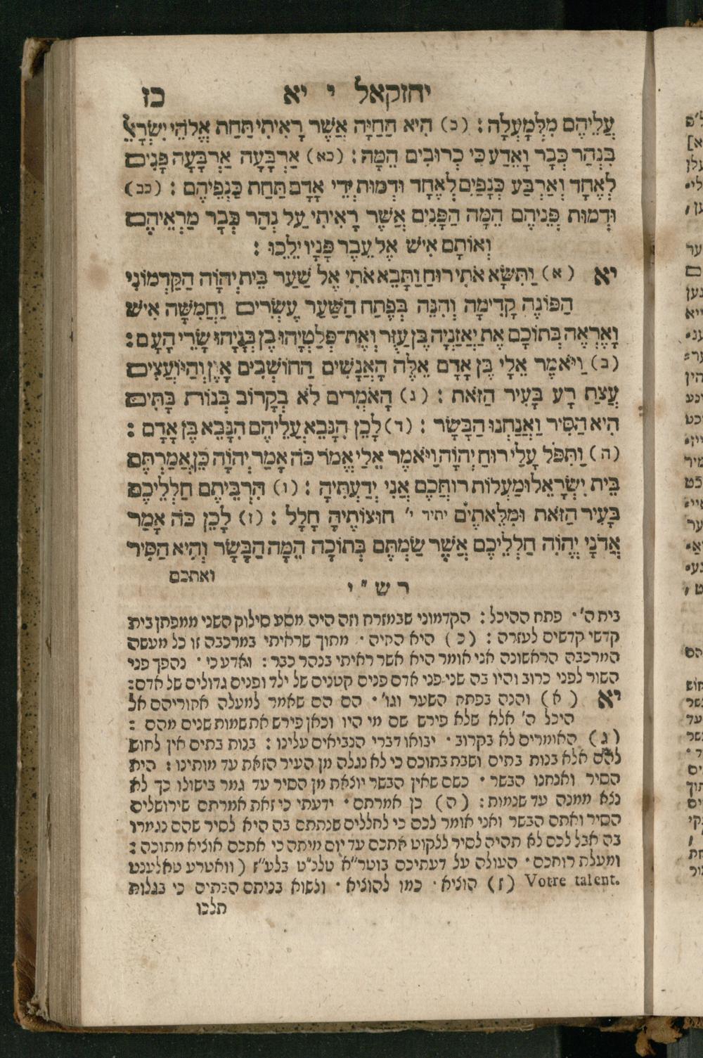 Ṿe-hu Sefer Yeḥezḳel / meturgam Ashkenazit u-mevoʾar, gam hitsagti bo perush ... Rashi z.ts.l. ... Ṿe-nilṿeh elaṿ perush Mikhlal yofi ...והוא ספר יחזקאל / מתורגם אשכנזית ומבואר, גם הצגתי בו פירוש ... רש״י זצ״ל ... ונלוה אליו פירוש מכלל יופי ...