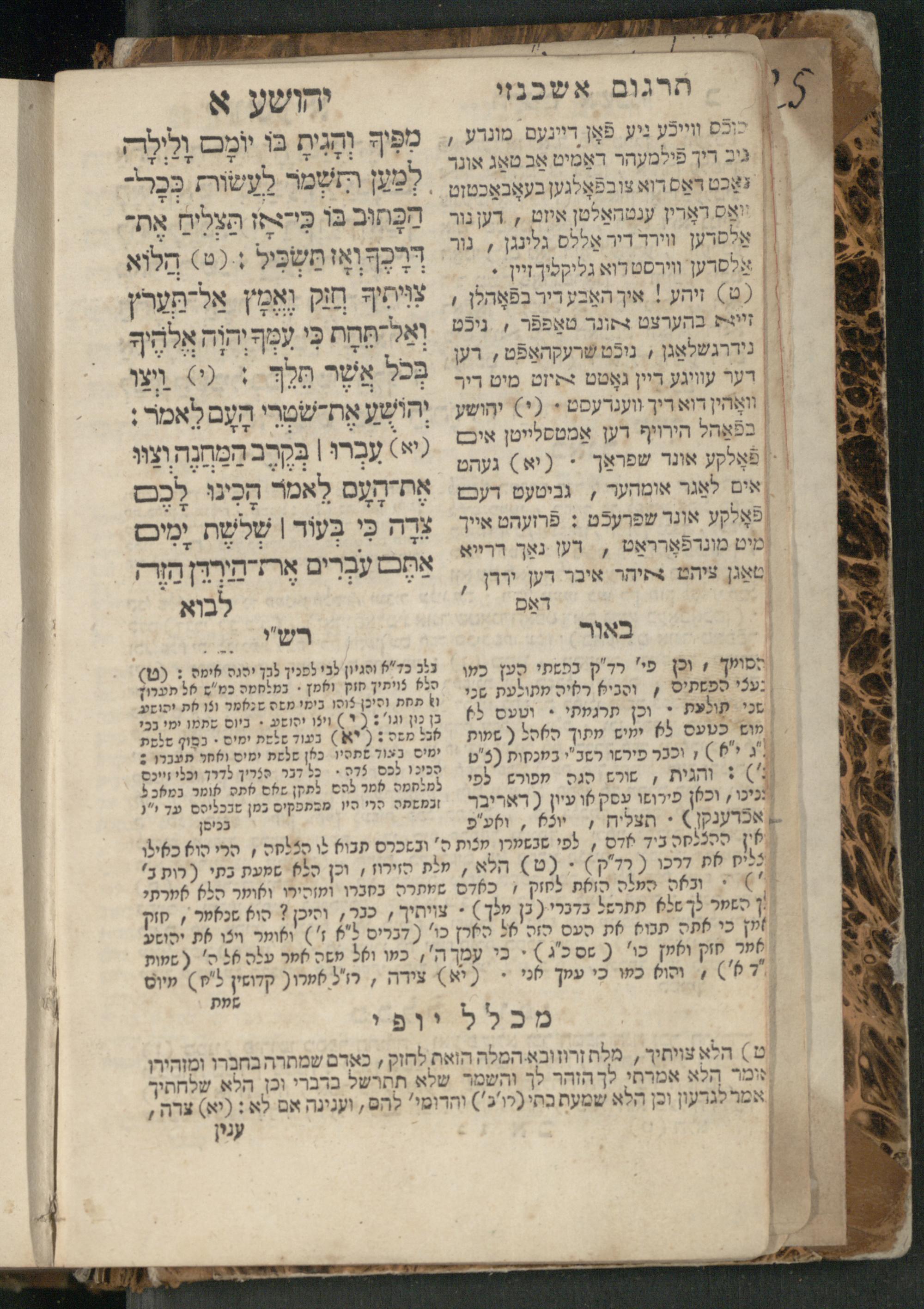 Sefer Yehoshuʿa / ʿim targum Ashkenazi, u-veʾur, meturgam u-mevoʾar me-et Meʾir Oborniḳ ʿim perush Rashi z.l. u-ferush Mikhlal yofiספר יהושע / עם תרגום אשכנזי, ובאור, מתורגם ומבואר מאת ר׳ מאיר אברניק עם פירוש רש״י ז״ל ופירוש מכלל יופי